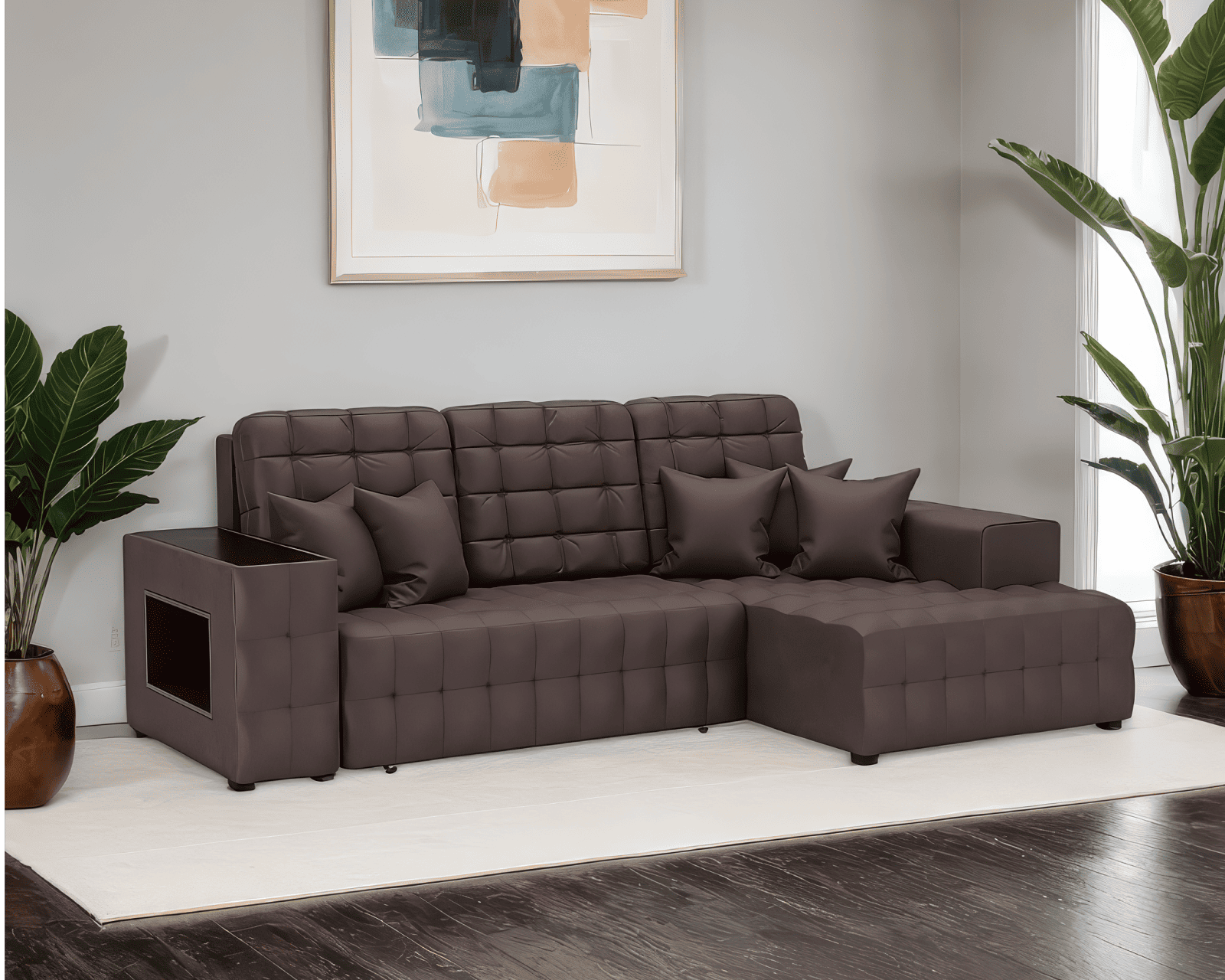 Удобство использования дивана «Мадрид» дополняется ящиком для хранения, который расположен внутри угловой части. В него можно положить небольшие вещи или постельные принадлежности, сохраняя порядок и экономя пространство.