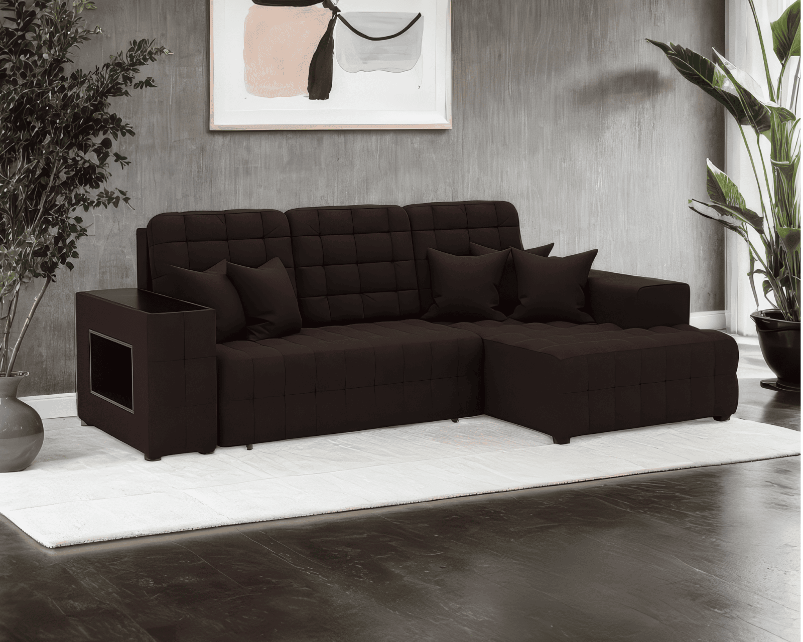 Удобство использования дивана «Мадрид» дополняется ящиком для хранения, который расположен внутри угловой части. В него можно положить небольшие вещи или постельные принадлежности, сохраняя порядок и экономя пространство.