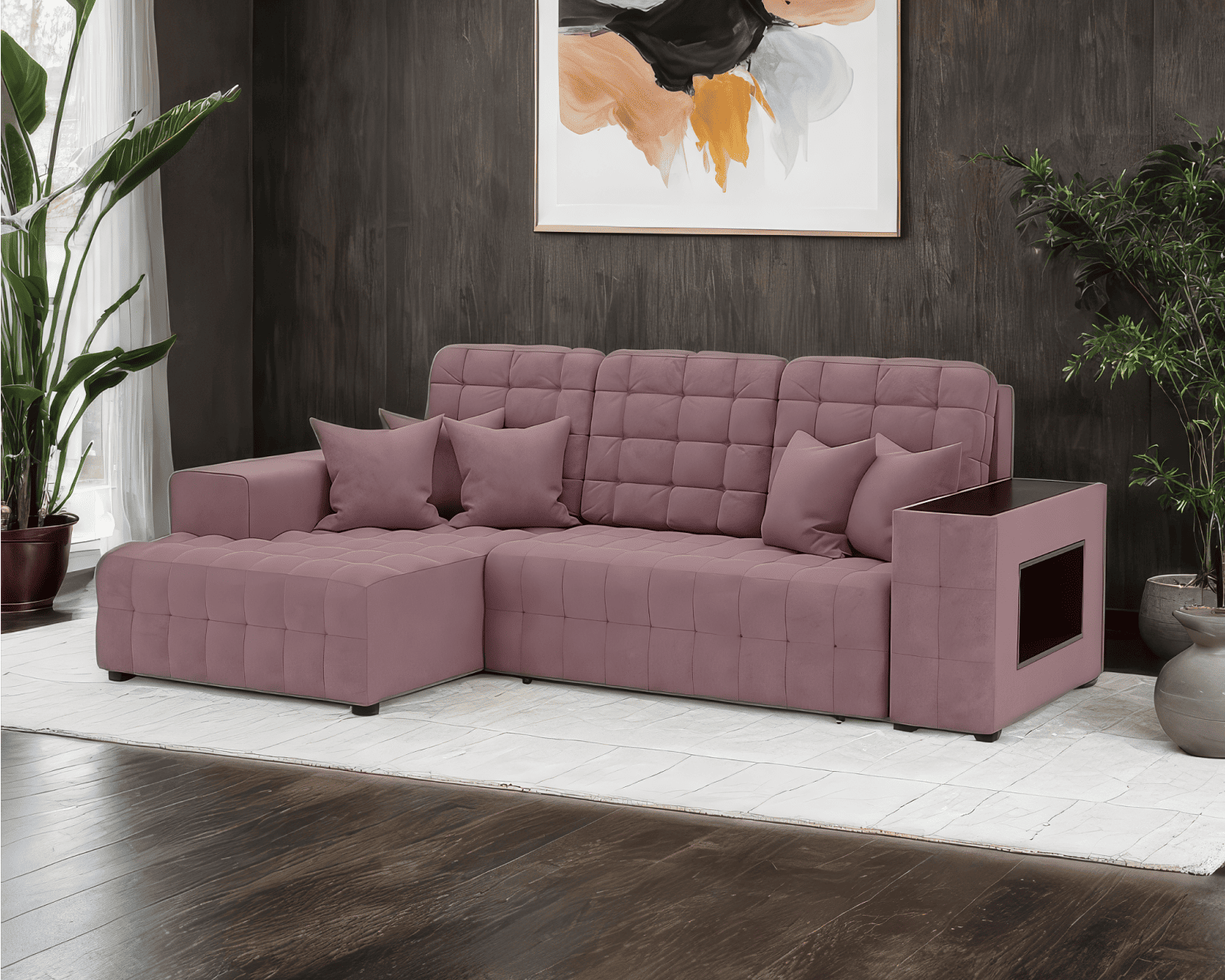 Удобство использования дивана «Мадрид» дополняется ящиком для хранения, который расположен внутри угловой части. В него можно положить небольшие вещи или постельные принадлежности, сохраняя порядок и экономя пространство.