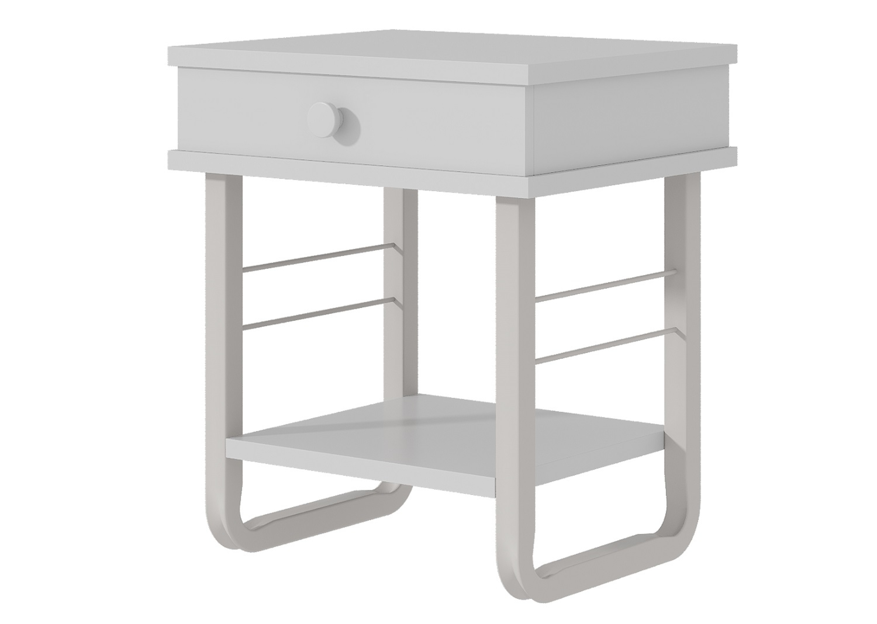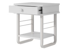 Прикроватная тумба Грета смотрится очень эффектно благодаря необычному дизайну и контрастным опорам. Модель с вместительной полкой и ящиком для мелочей отлично подходит для хранения самых разных личных вещей.