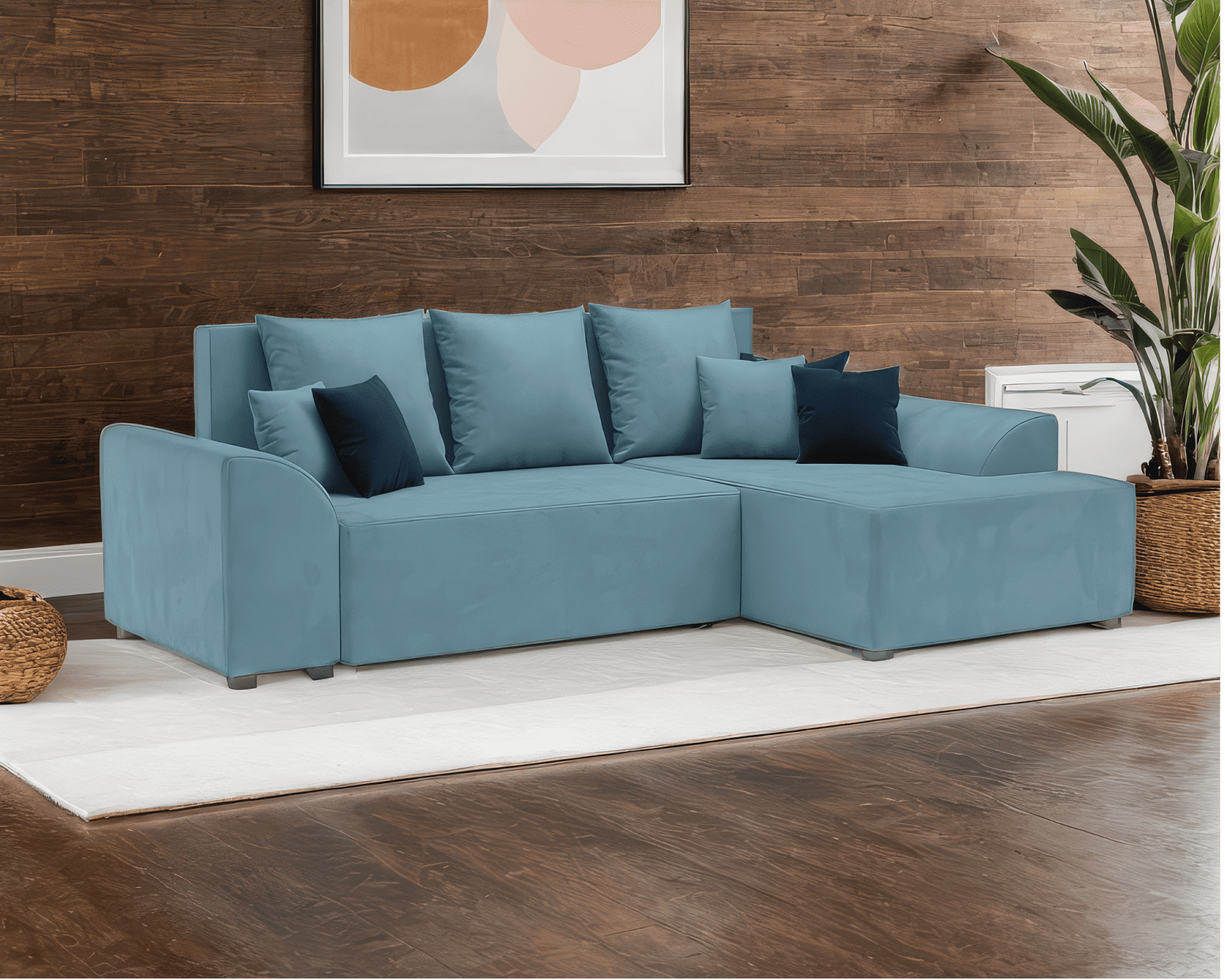 Удобство использования дивана «Каскад» дополняется ящиком для хранения, который расположен внутри угловой части. В него можно положить небольшие вещи или постельные принадлежности, сохраняя порядок и экономя пространство.
