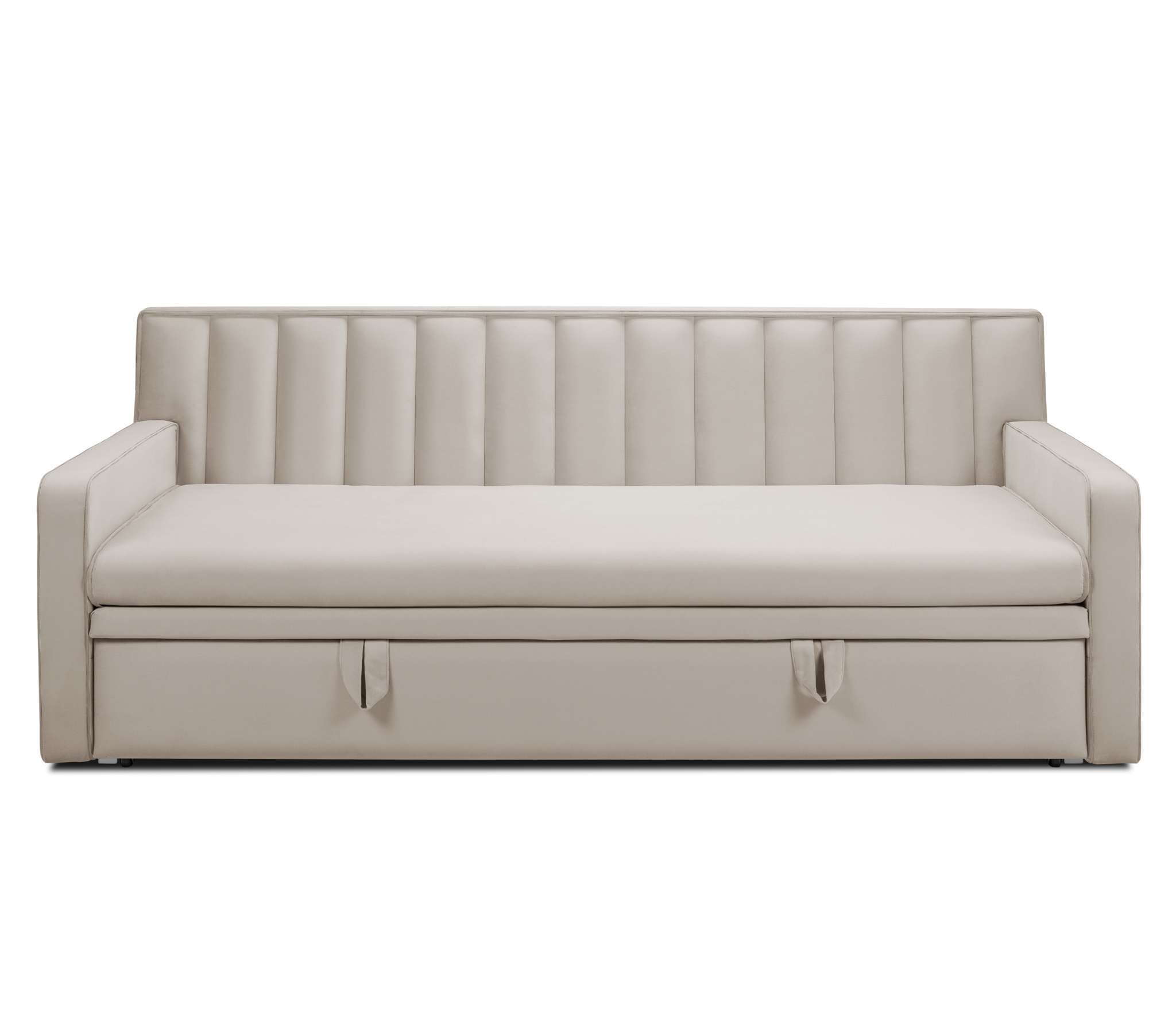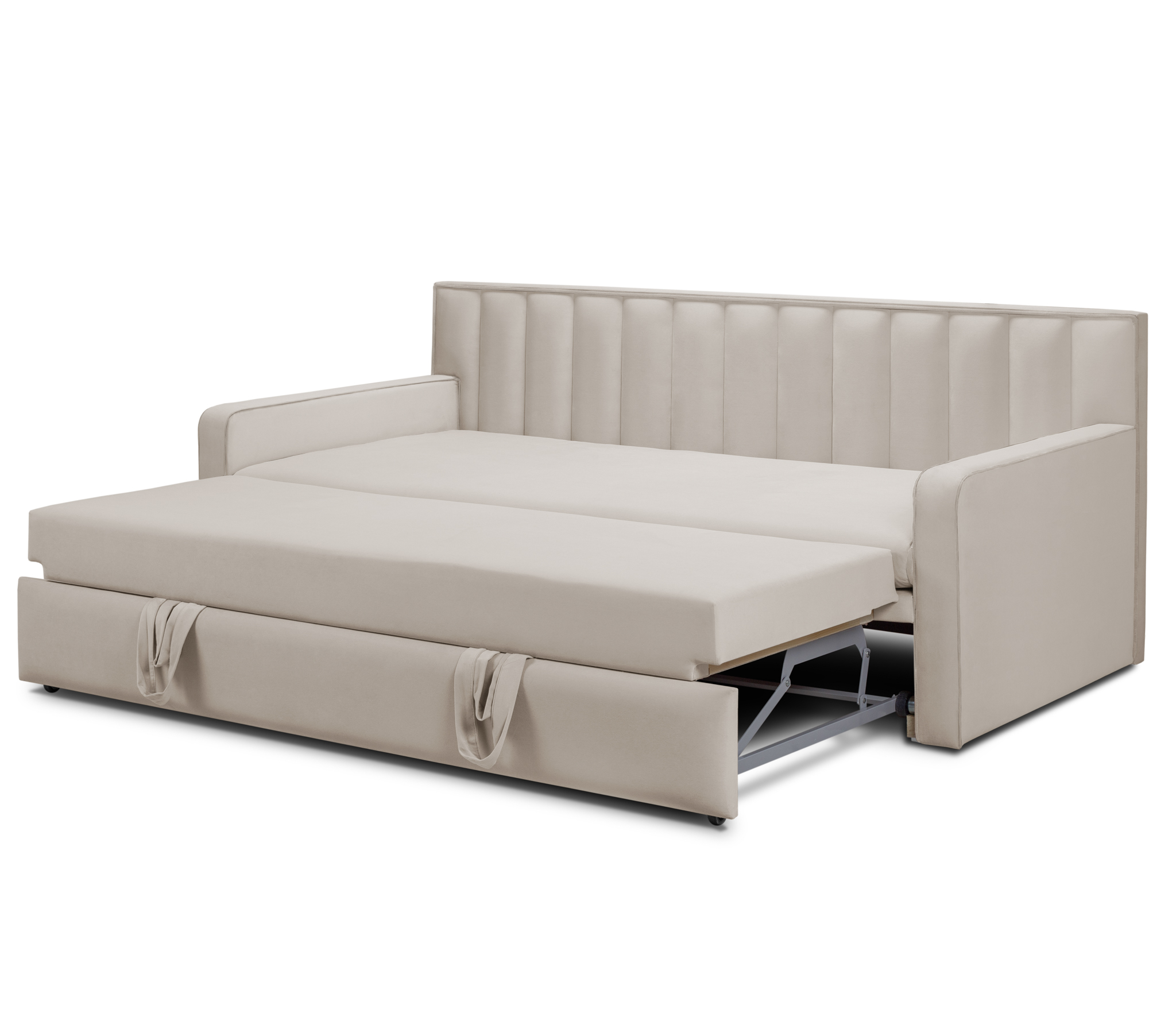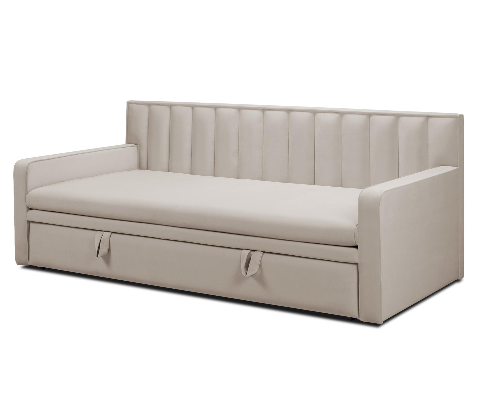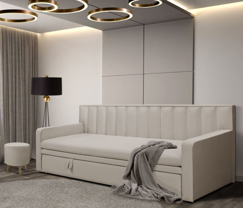 Широкие боковины и особая техника раскладки позволяет использовать кровать днём, как стильный диван.