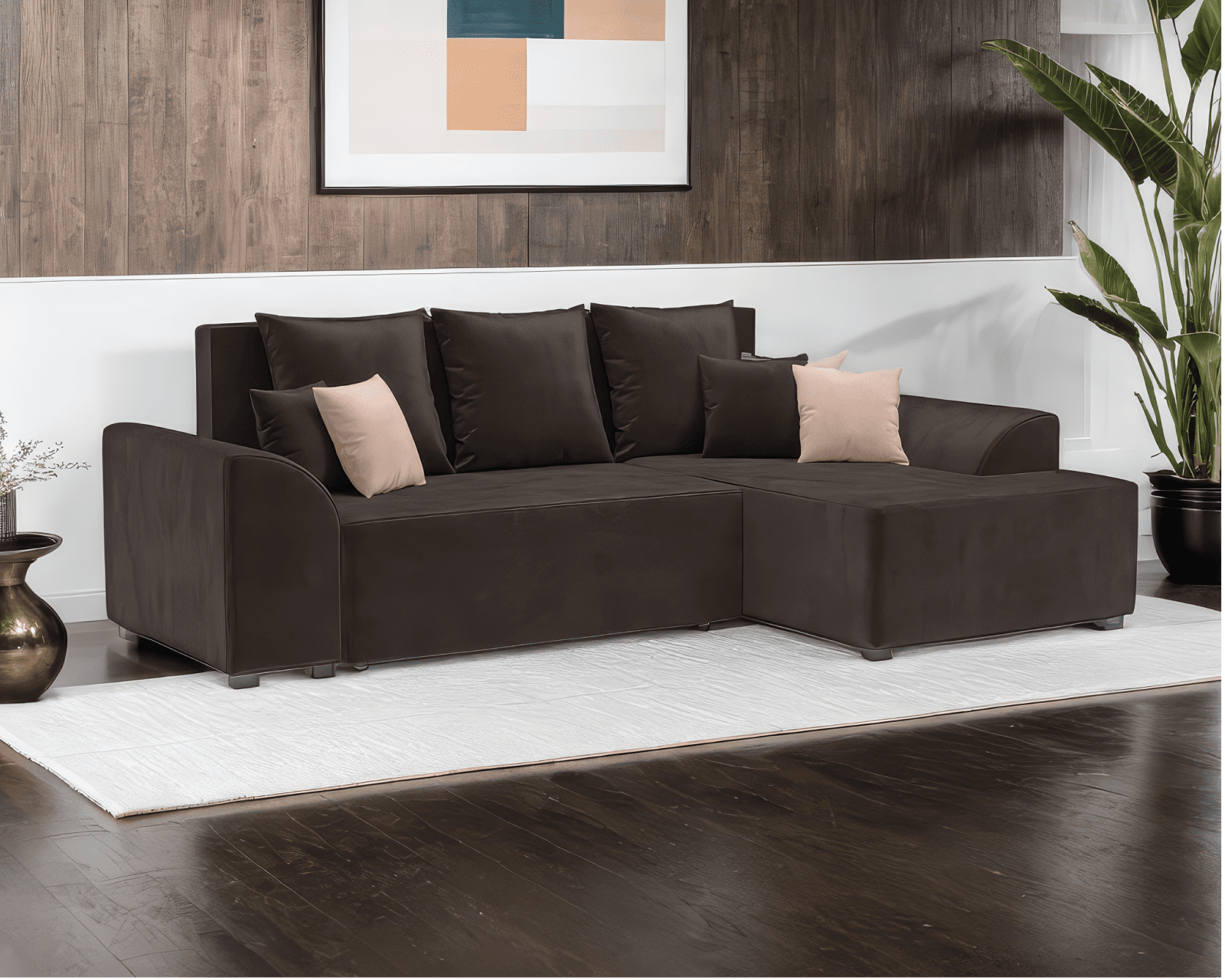 Удобство использования дивана «Каскад» дополняется ящиком для хранения, который расположен внутри угловой части. В него можно положить небольшие вещи или постельные принадлежности, сохраняя порядок и экономя пространство.