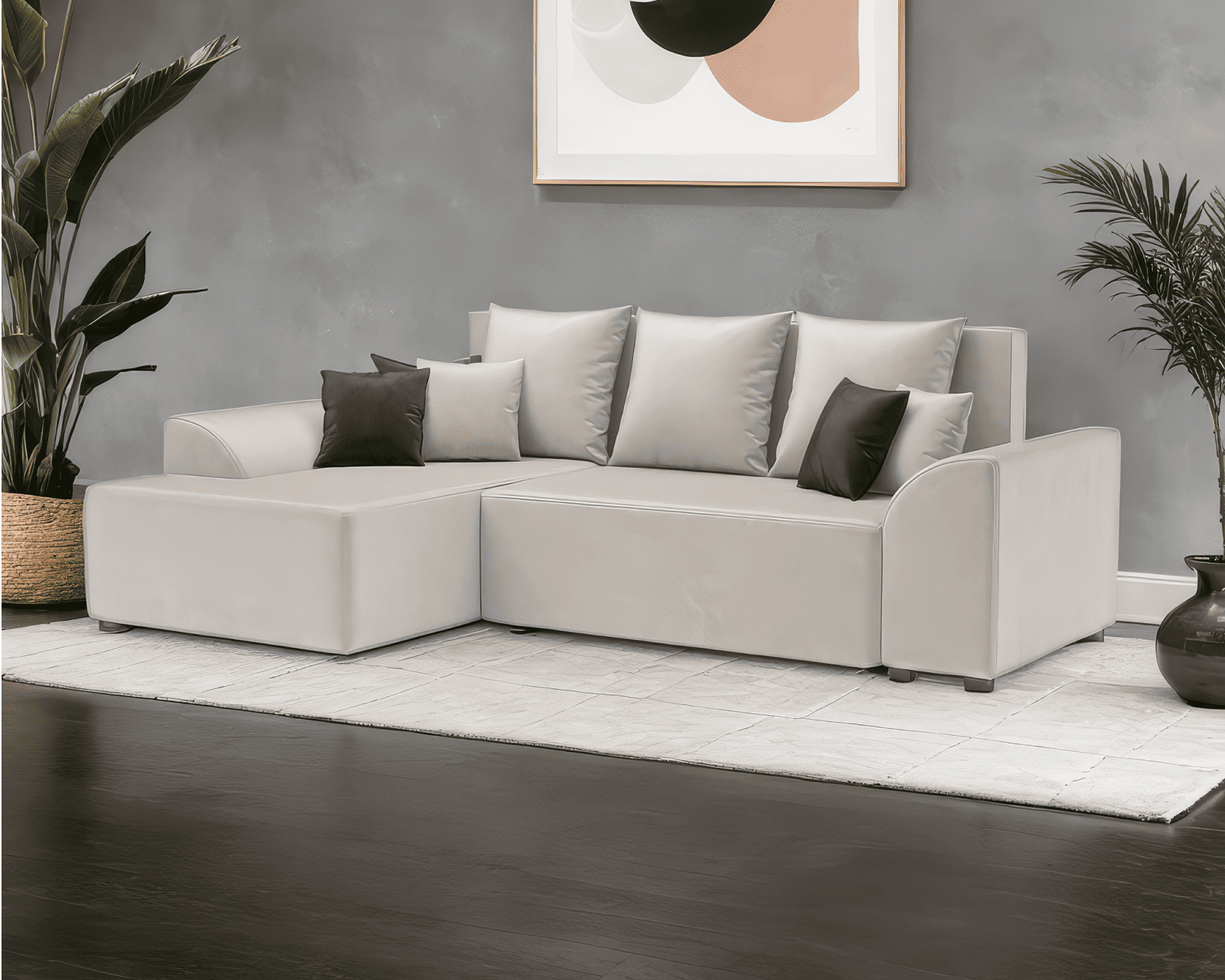Удобство использования дивана «Каскад» дополняется ящиком для хранения, который расположен внутри угловой части. В него можно положить небольшие вещи или постельные принадлежности, сохраняя порядок и экономя пространство.