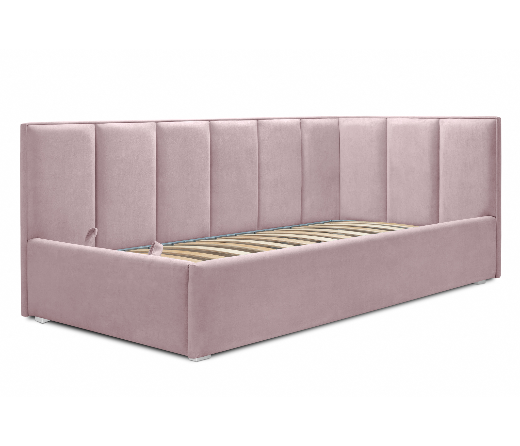 Кровать с мягким изголовьем угловая Лайф 140 с подъемным механизмом, микровелюр (Розовый) Код I0000393672