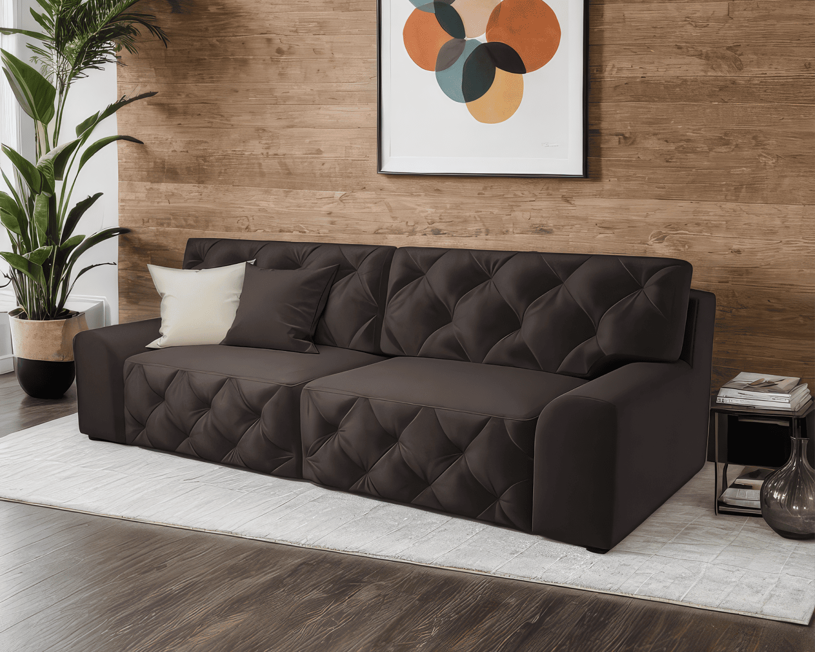Особенностью дивана выступают мягкие округлые подлокотники, которые удобно использовать как дополнительную опору под голову, обеспечивающей комфорт при чтении.