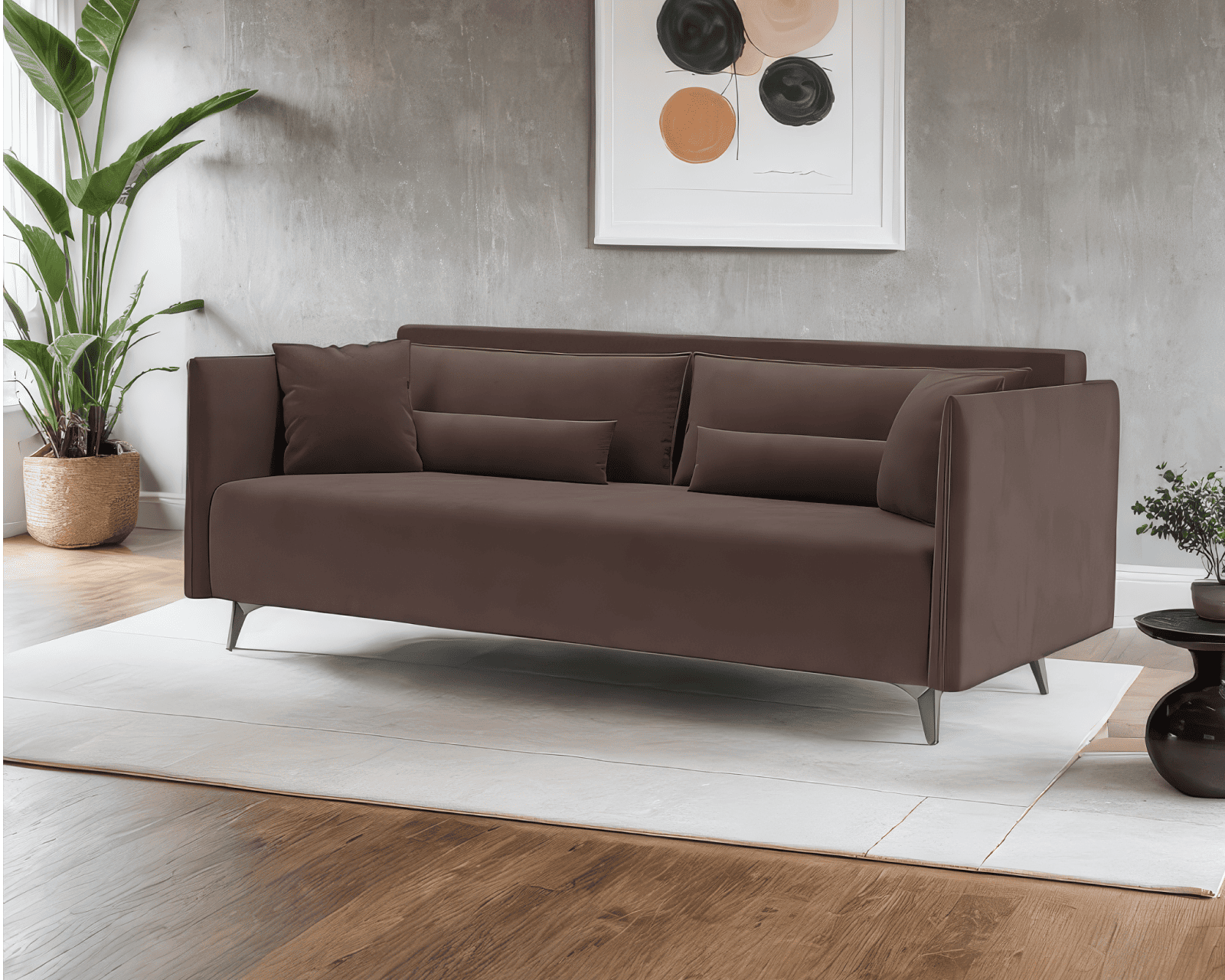 2. Металлические ножки обладают высоким уровнем прочности и устойчивости. Модель на длинных металлических ножках выглядит легкой и изящной. Упрощается процесс уборки в помещении, так как увеличенное пространство между полом и диваном позволяет без лишних усилий убрать пыль и иные загрязнения.