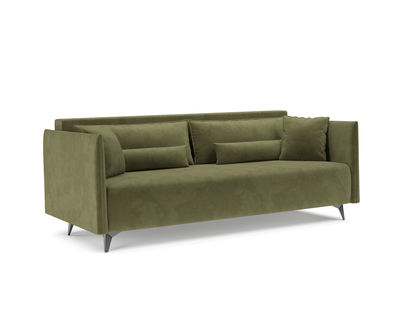 2. Металлические ножки обладают высоким уровнем прочности и устойчивости. Модель на длинных металлических ножках выглядит легкой и изящной. Упрощается процесс уборки в помещении, так как увеличенное пространство между полом и диваном позволяет без лишних усилий убрать пыль и иные загрязнения.