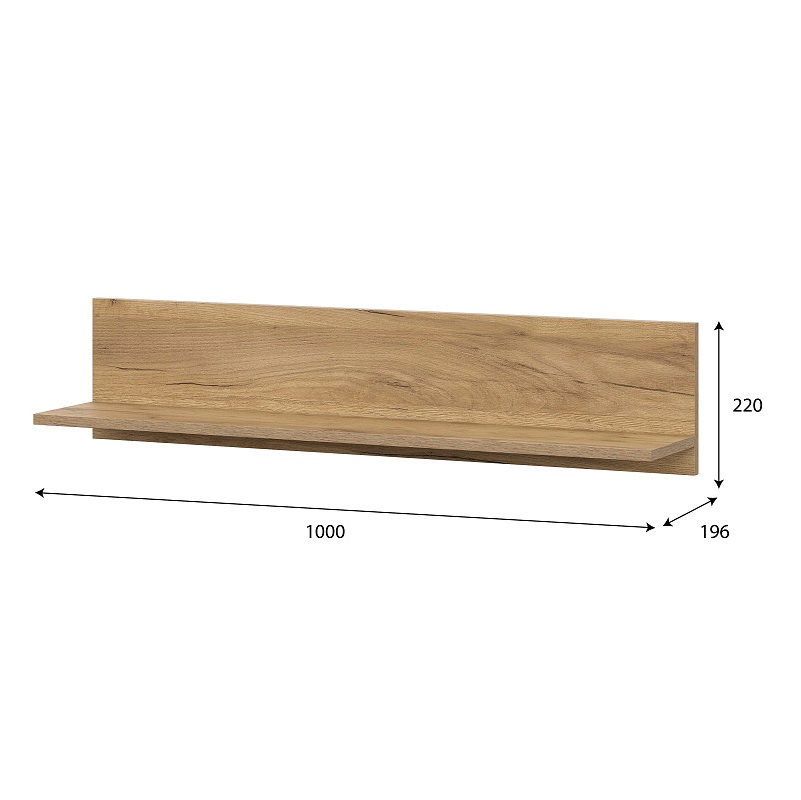 Открытая навесная полка Милан дополнит интерьер комнаты, позволяя разместить картины, книги и аксессуары. Изготовлена из ЛДСП в цвете дуб золотой.