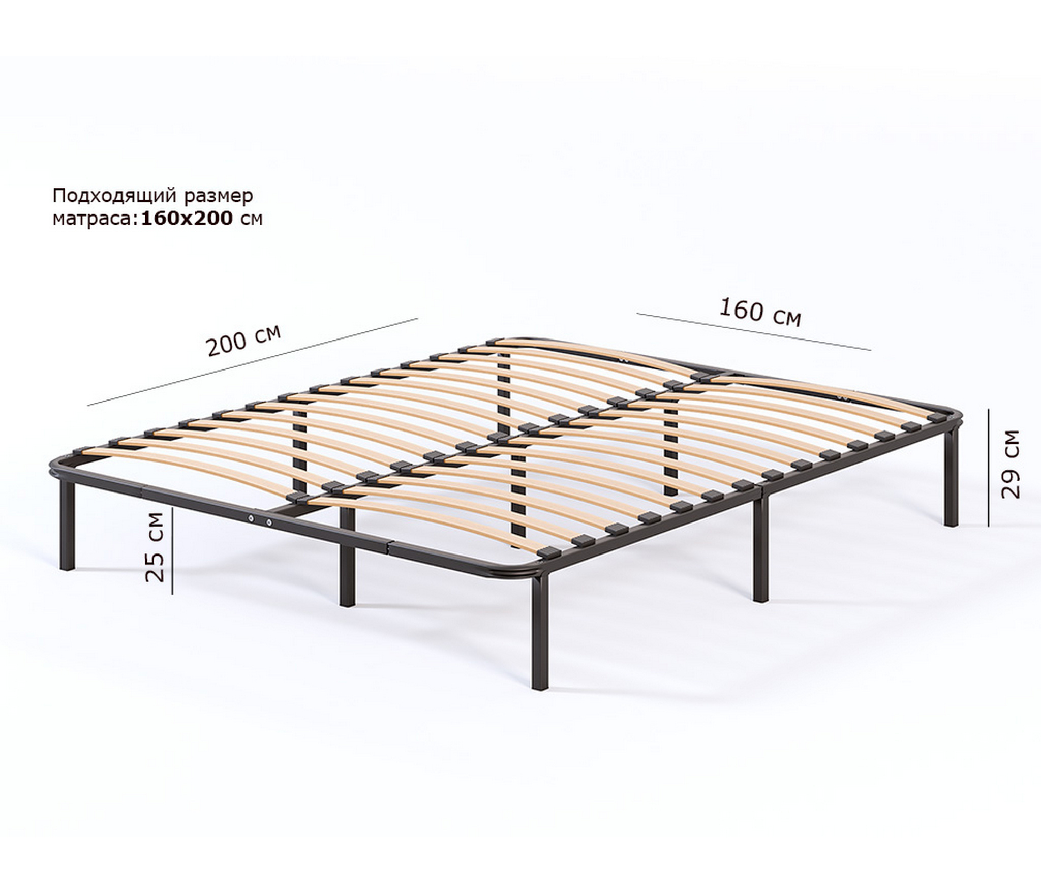 Преимущества нашей кровати из металла : ++ Надежные несущие элементы в основании - гнутоклееные березовые ламели ++ Усиление двумя дополнительными опорами ++ Качественная порошковая конвейерная окраска. ++ Легкий вес и компактные размеры упаковки (влезет в обычный автомобиль) ++ Экологичные материалы - не издает запахов как кровать из ЛДСП ++ Легко собирается и разбирается для хранения или перевозки ++ Удобный доступ для уборки под кроватью.