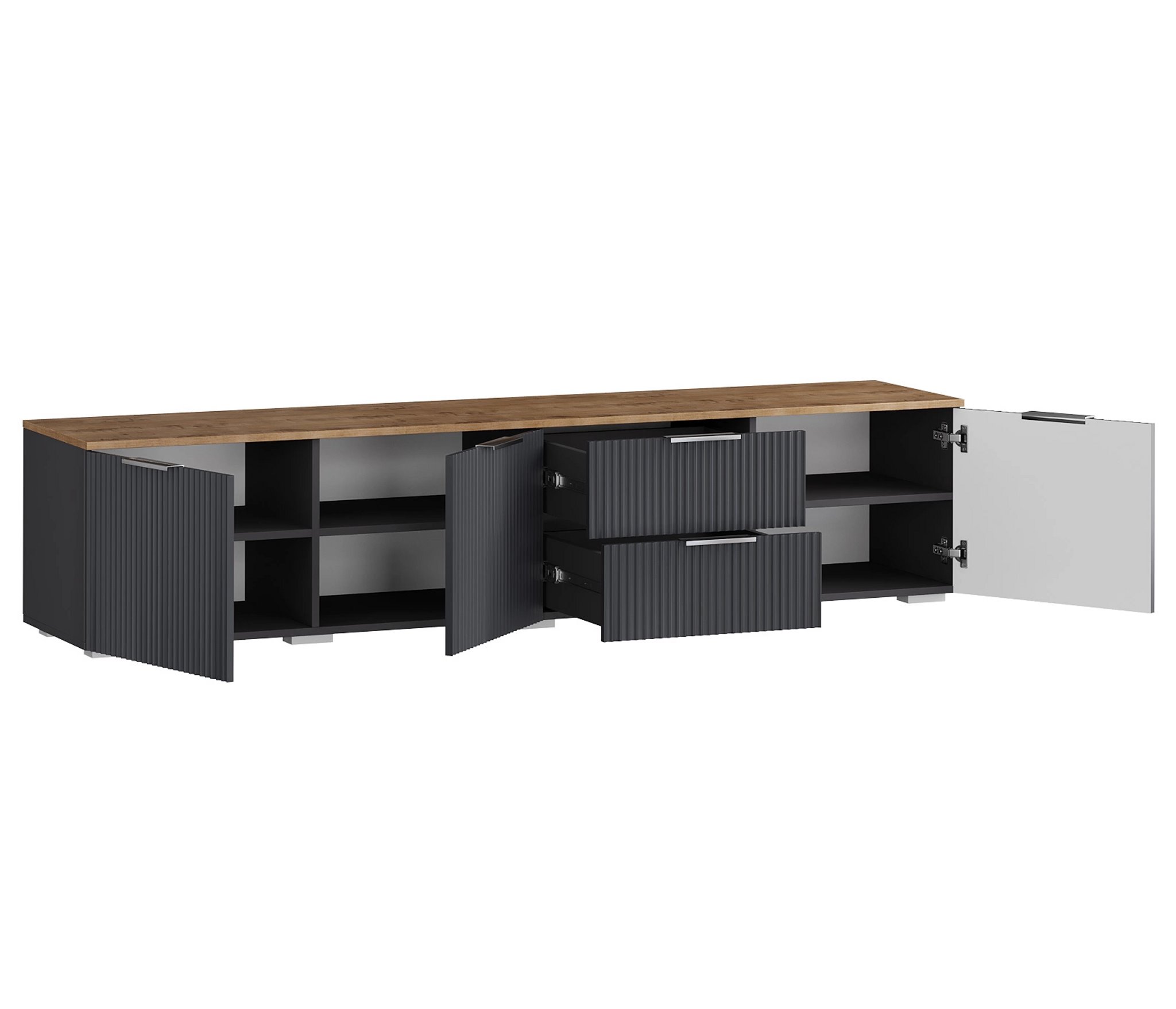 Тумба под ТВ Ингрия выполнен из ЛДСП класса эмиссии E1, фасады МДФ покрытые матовой пленкой.