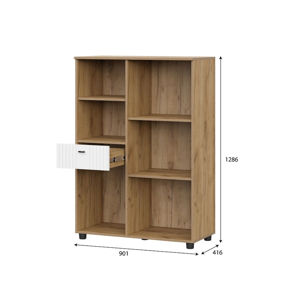 Наличие открытых и закрытых ниш позволит разместить различные по виду и размеру вещи: книги, предметы декора, вещи в небольших коробках и т.д.