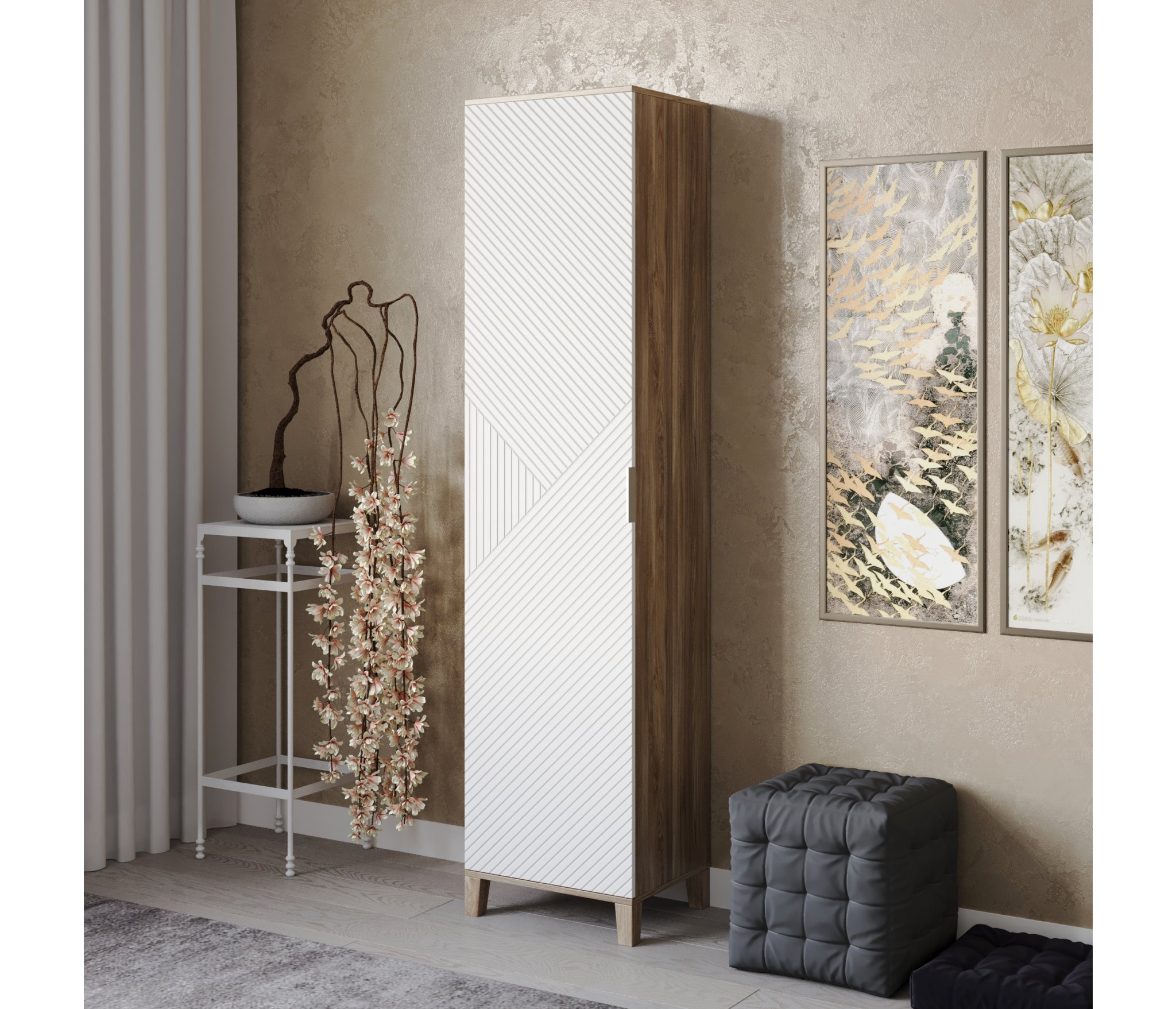 Шкафы Марвин, выполненные в скандинавском стиле, органично дополнят интерьер любой комнаты. Ножки из массива бука, геометрическая фрезеровка на фасадах, сочетание цветов отличительная черта серии Шкафов Марвин.