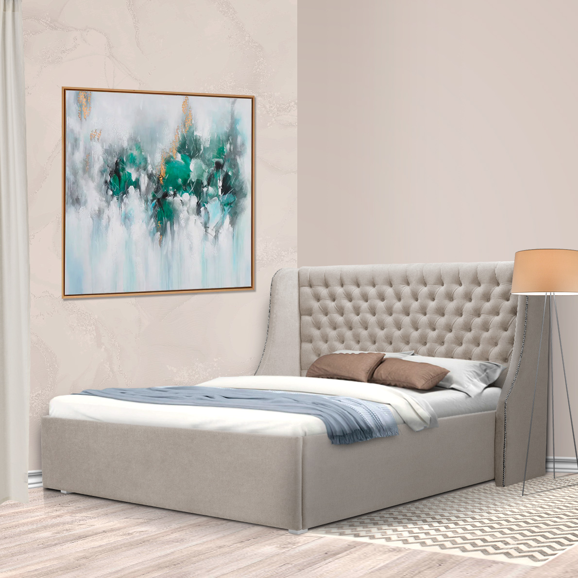 Это элегантная модель с высоким декоративным изголовьем украсит ваш дом и подчеркнет достоинства вашего интерьера.