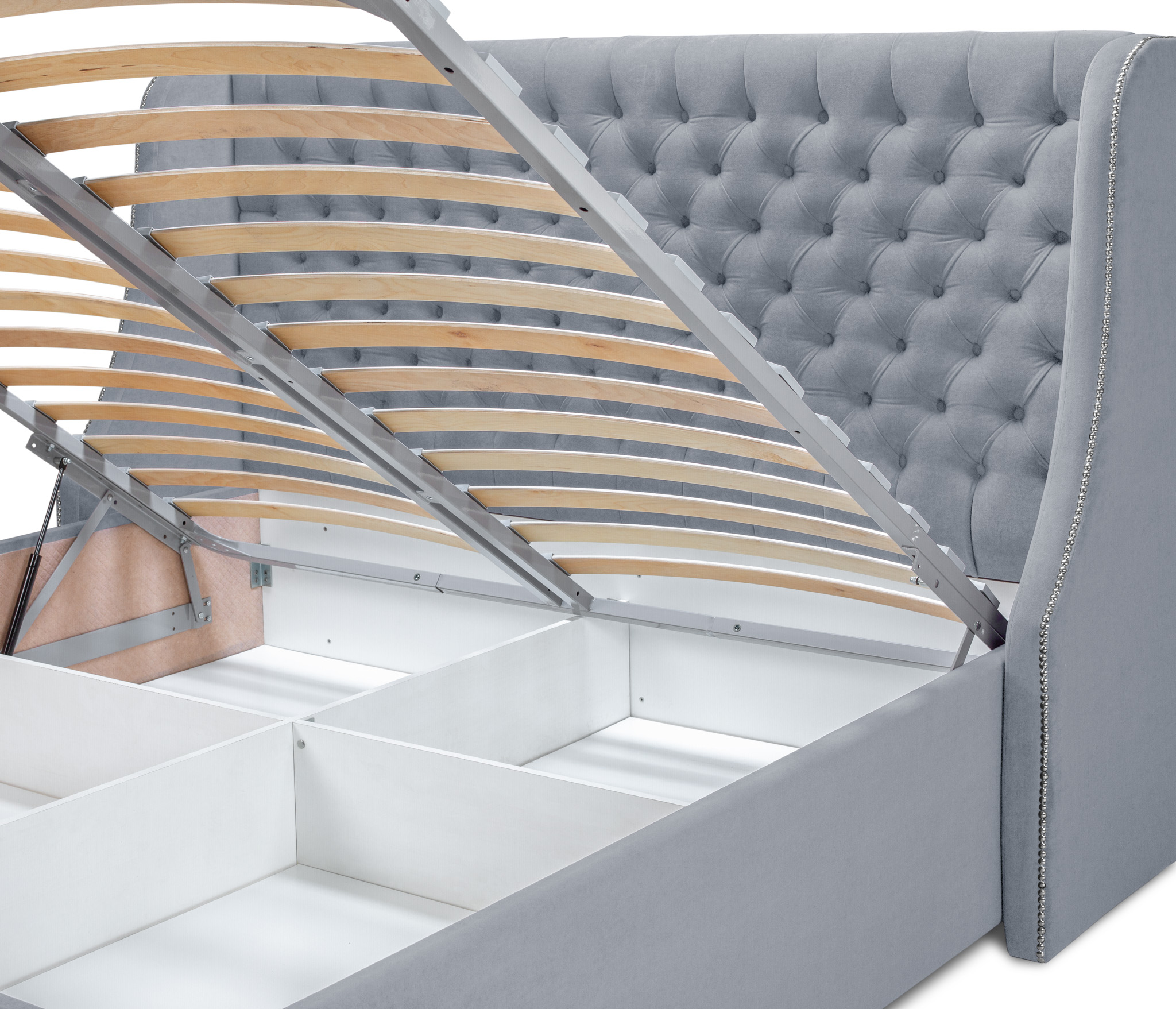 Спальное место укомплектовано газлифтами и вы без особых усилий имеете доступ к ящику для хранения.