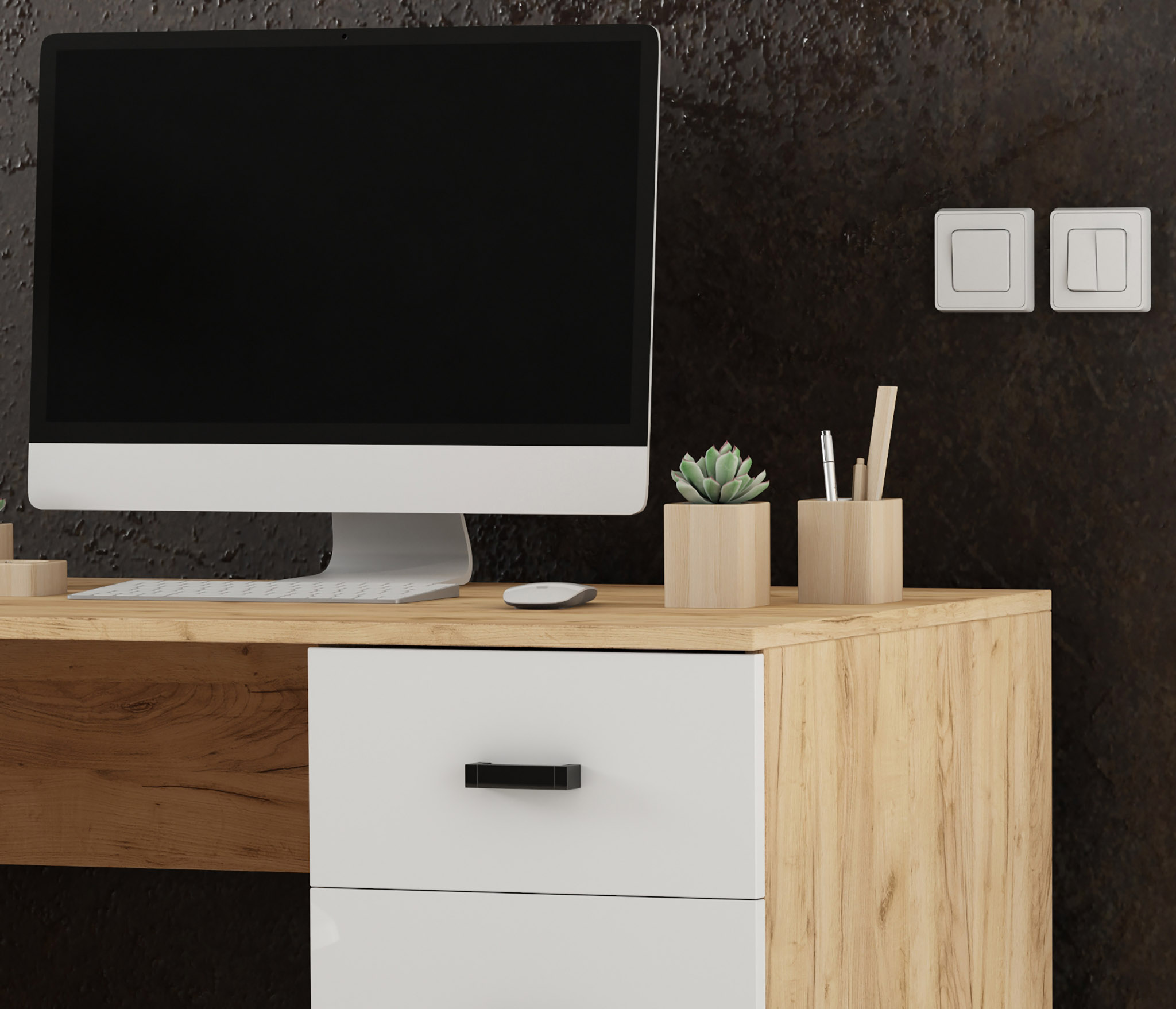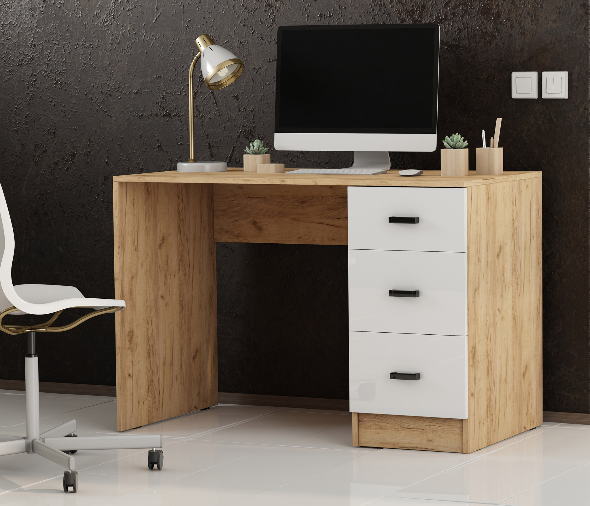 Стол письменный СТАНДАРТ Дуб Вотан-Белый гладкий (Дуб Вотан)