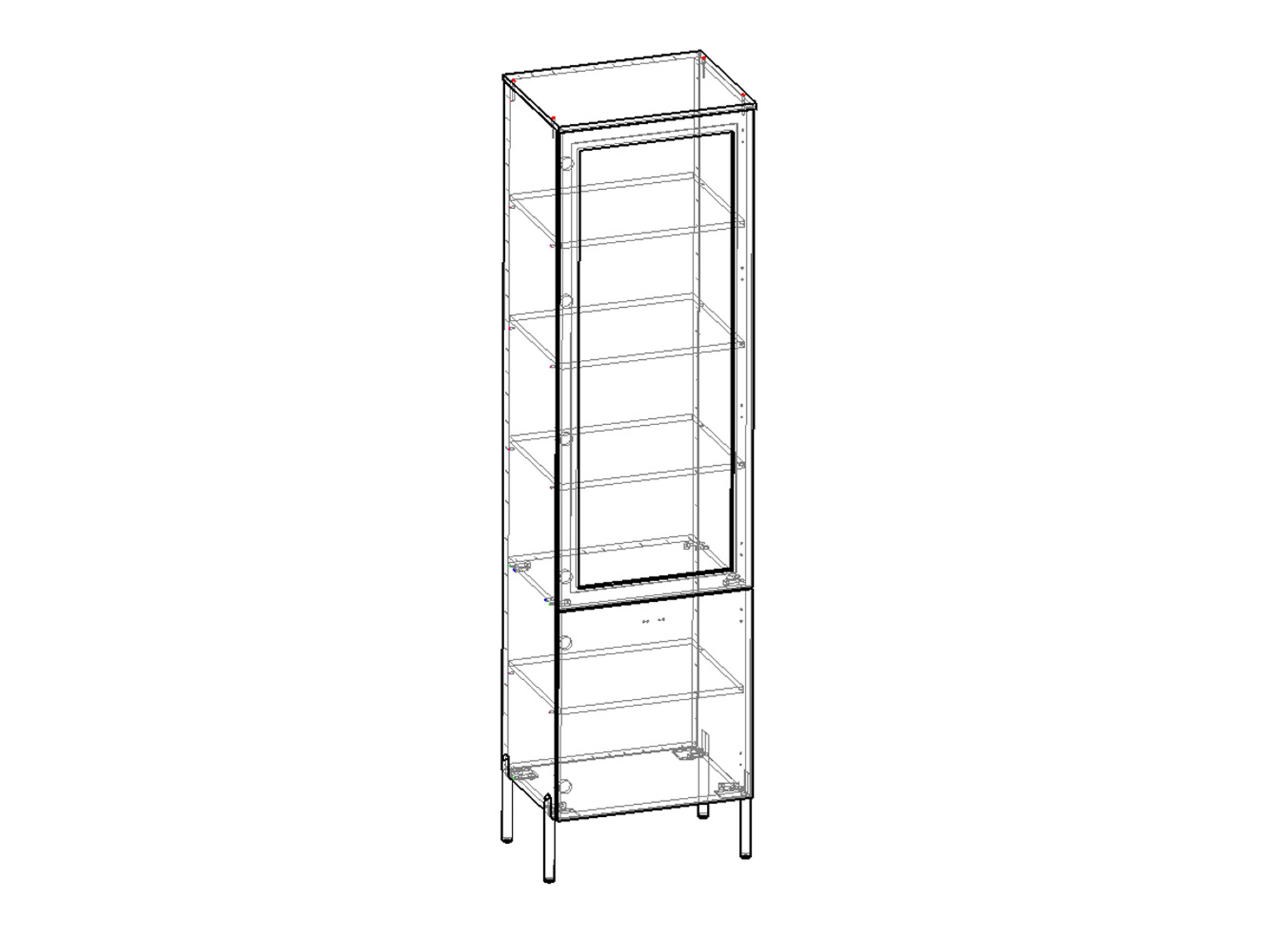 Шкаф оснащен двумя распашными дверями с доводчиками и дверью со стеклом, что позволяет удобно просматривать содержимое шкафа и обеспечивает безопасность использования.
