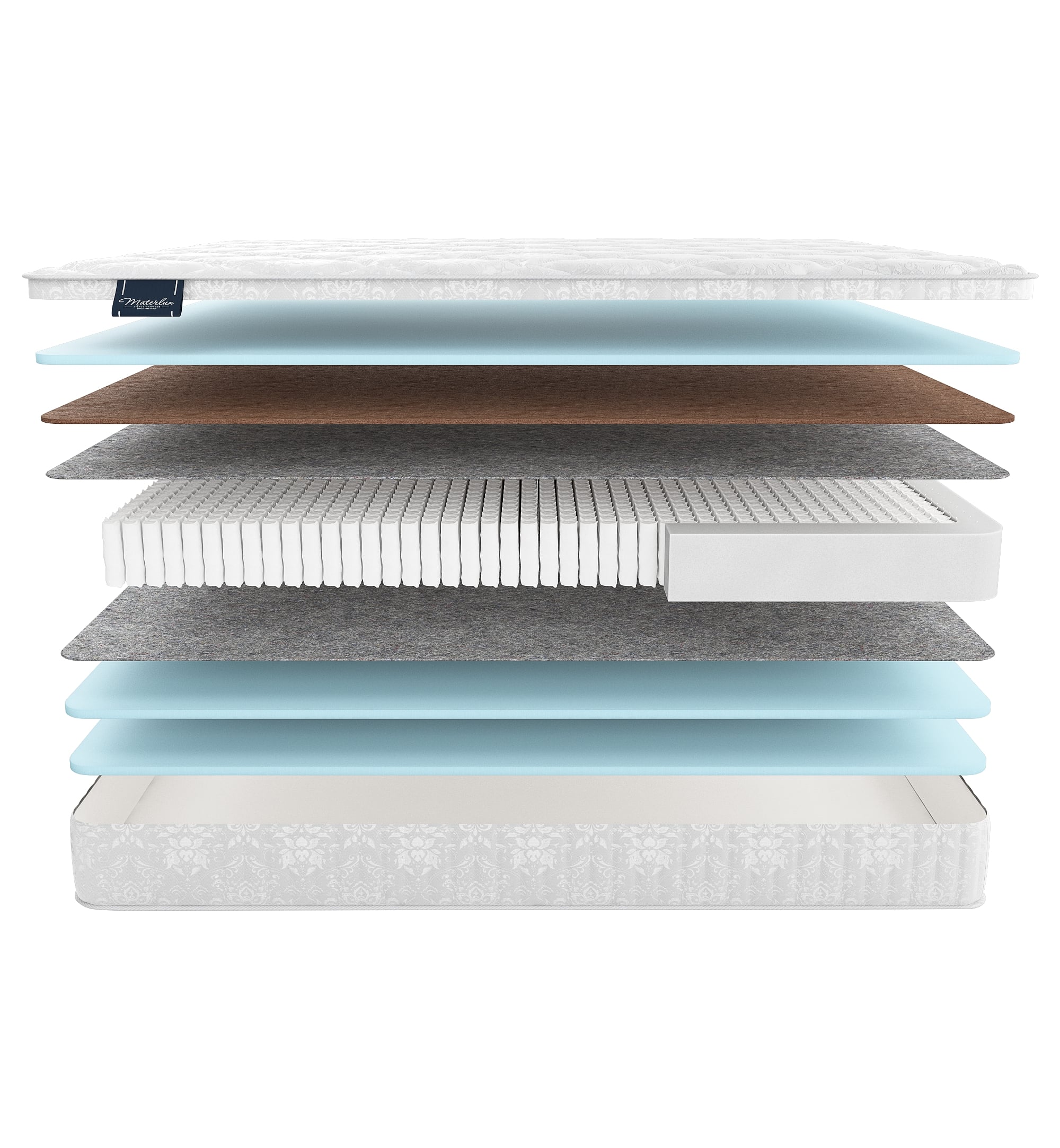 ● Feltro Termico — плотный термофиксированный фетр из шерсти, пуха и хлопка. Мы прокладываем слой фетра между пружинами и наполнителями. Материал защищает слои от давления пружинами, поэтому матрас служит дольше, сохраняет упругость и ортопедические свойства.