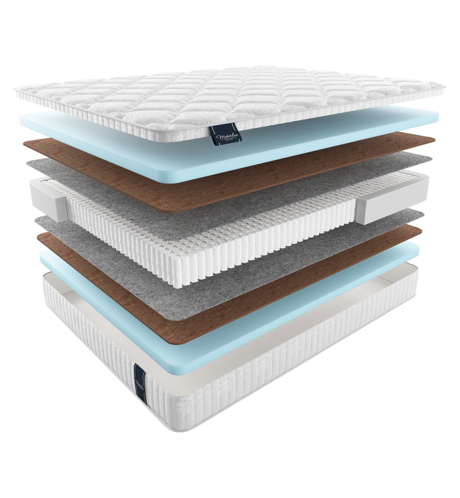 MaterLux Mola Multi из коллекции Voyage — матрас с высокой степенью упругости и сбалансированной жесткостью. Анатомические свойства пены сочетаются с ортопедической поддержкой кокосовой койры и пружинной системы. Компоненты с разными свойствами делают изделие комфортным и поддерживающим.