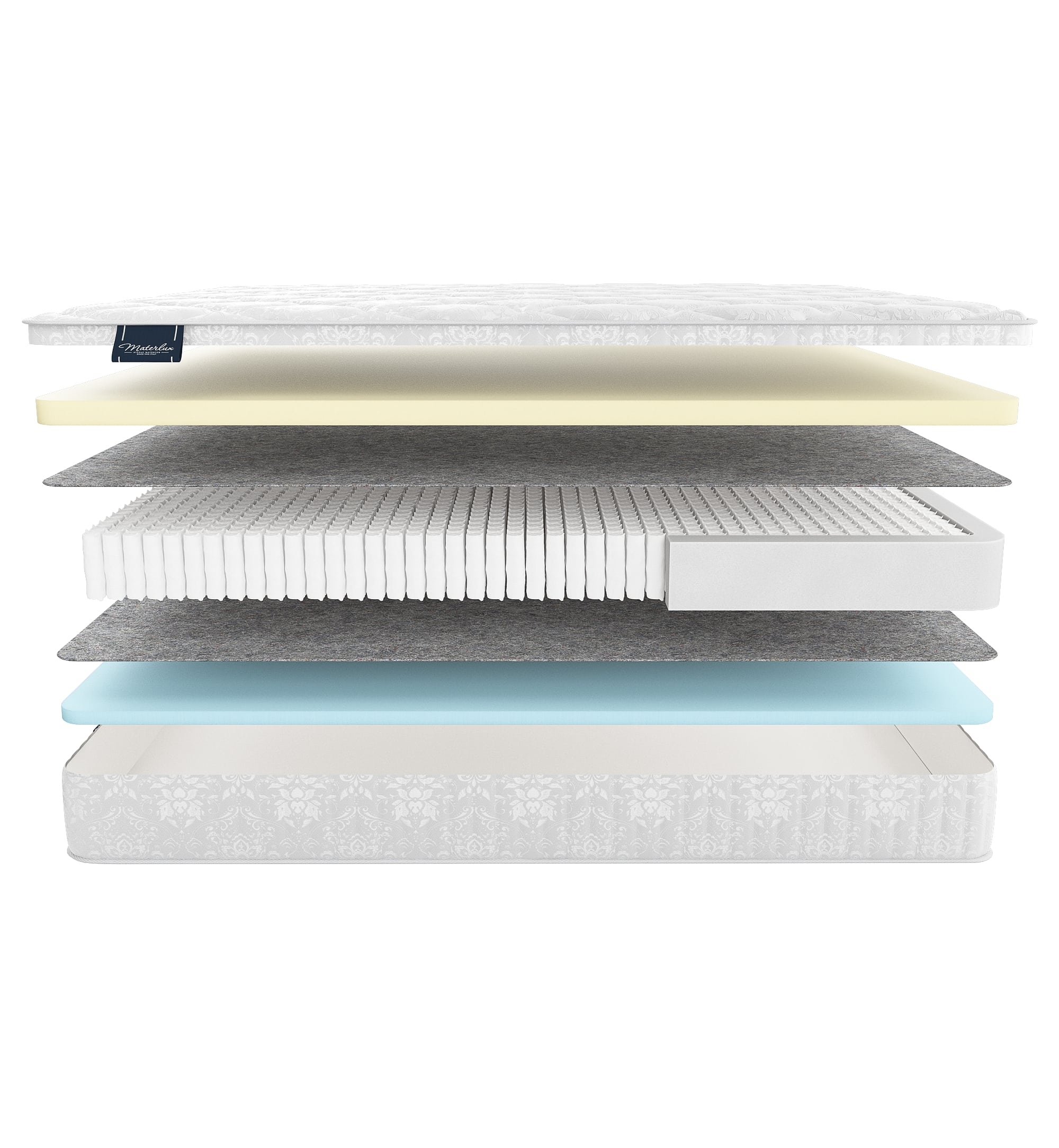 Для этого матраса мы выбрали премиальную пружинную систему Molla Super Protezione 1000. Пружины моментально откликаются на изменения нагрузки и смену позы, точно подстраиваются под контуры тела, удерживают позвоночник в естественном, анатомически правильном положении.