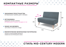 Для миниатюрного дивана «Килт» найдется место в любом помещении, будь то кухня, гостиная, спальня, летняя веранда, беседка на даче или даже прихожая. Со стилем mid-century modern эту модель роднит четкая геометрия формы, косые деревянные опоры и сравнительно высокая спинка.