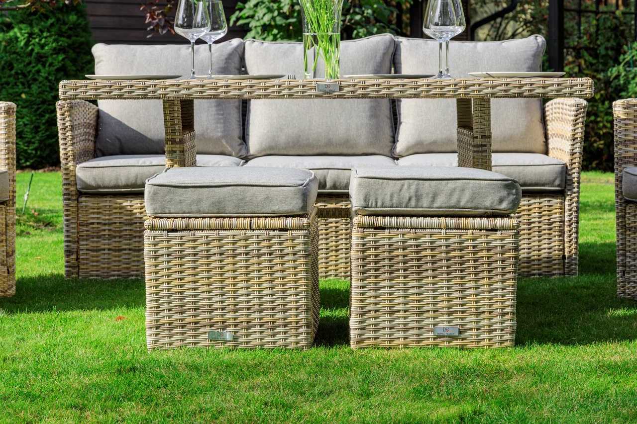 Выполненная в трендовом сером оттенке уличная мебель ZOYA обладает всеми необходимыми характеристиками для создания полноценного места отдыха на территории приусадебного участка. Комплект сочетает в себе качества обеденных гарнитуров и лаунж-зон, что делает его отменным решением для всех ценители досуга под открытым небом.