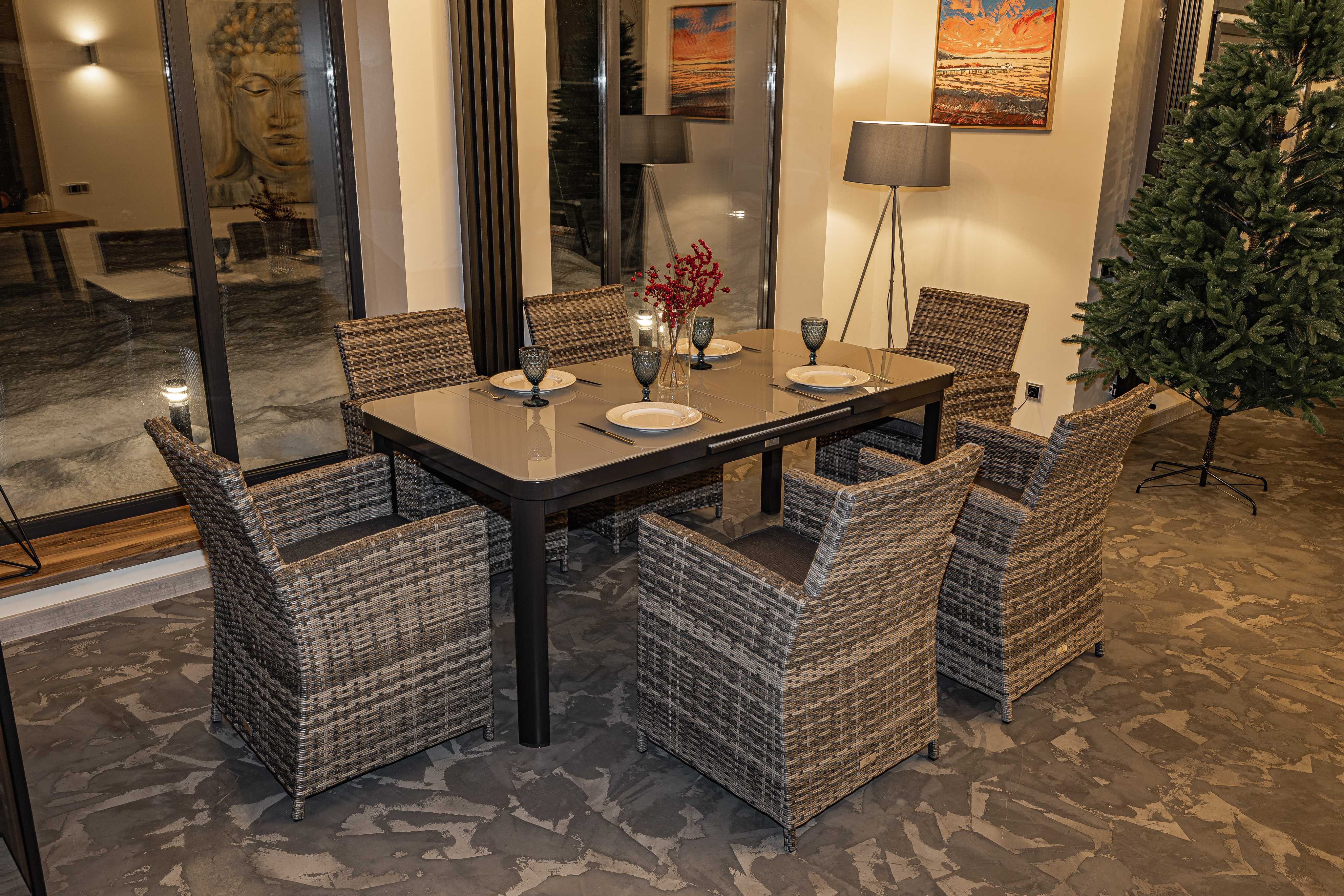 Новое сочетание садовой мебели, состоящее из алюминиевых кресел Fiona и алюминиевого раздвижного стола LUDWIG, рассчитано на 6 персон и станет отличным выбором для тех, кто ценит комфорт и функциональность.