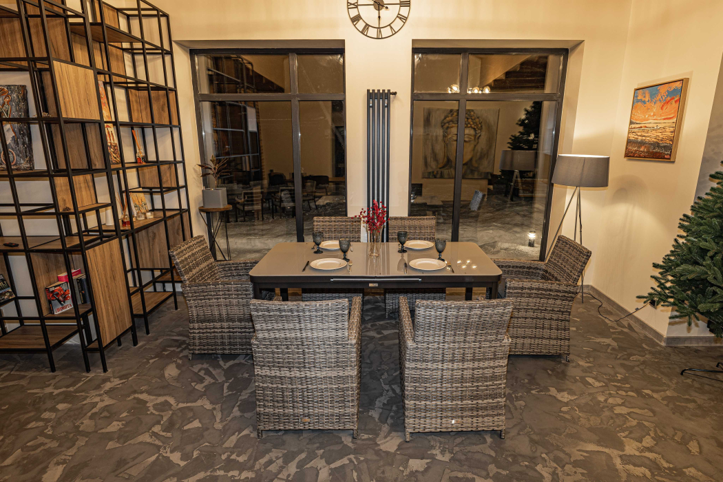 Алюминиевая конструкция столов и кресел Fiona и LUDWIG является прочной и долговечной, что делает этот набор мебели отличным выбором для использования на открытом воздухе. Кроме того, алюминиевые элементы легко чистятся и не требуют особого ухода.