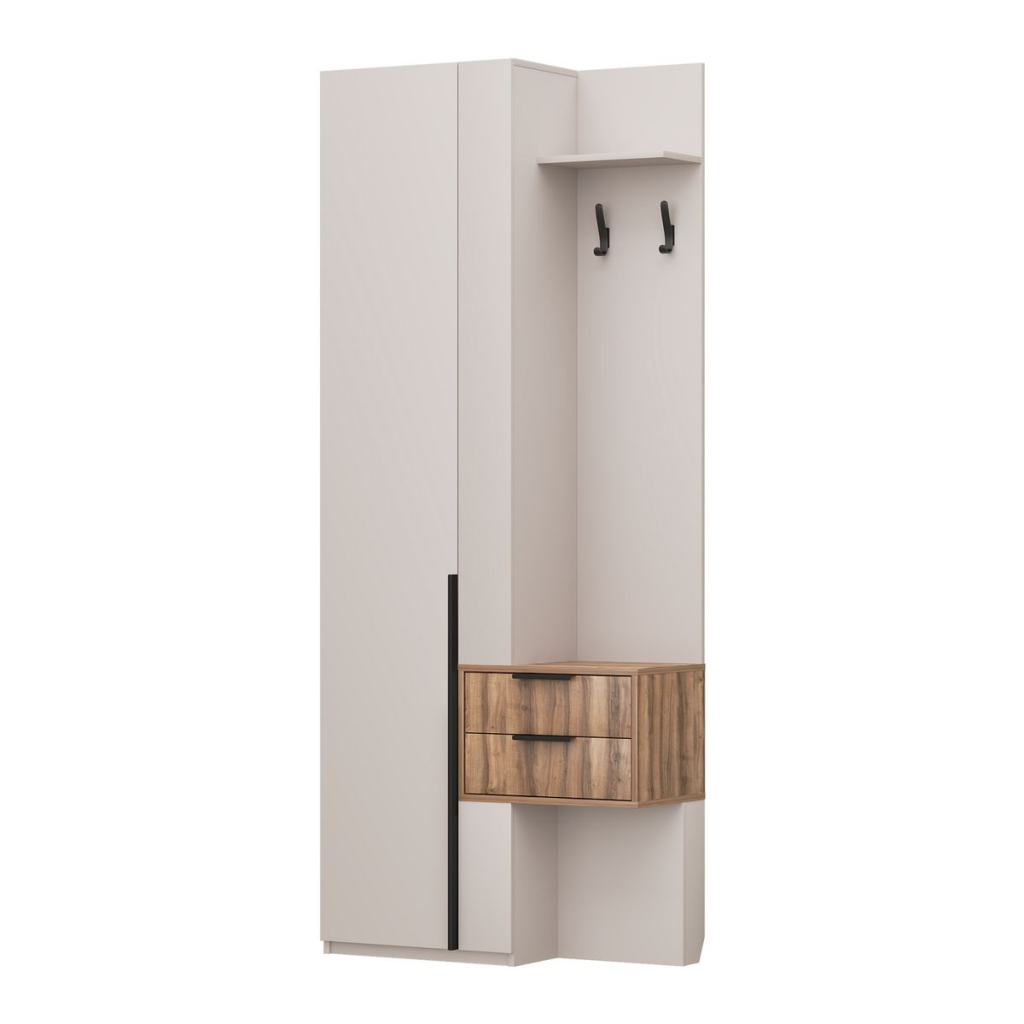 Особенности Рамочные фасады с раскладкой из профиля МДФ Металлические ручки Регулируемые опоры Выдвижная штанга для одежды Материалы ЛДСП 16 мм Кромка ПВХ 0,45 мм Дно ящика ХДФО 3 мм Профиль МДФ Зеркало 4 мм