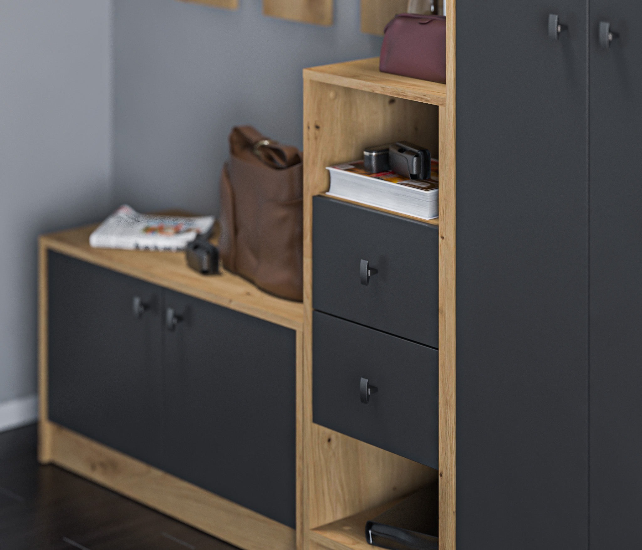 Модульная конструкция "Сидней" разработана для небольших помещений. Каждый модуль оптимизирован для экономии места, предлагая максимальную функциональность на минимальной площади. Вы можете создать свой собственный вариант прихожей, подбирая модули в соответствии с вашими потребностями и предпочтениями.