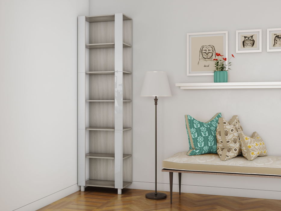 Отзывы о Столплит Стеллаж модульный Универсальный 35х60х220 Белое стекло Ясень шимо светлый