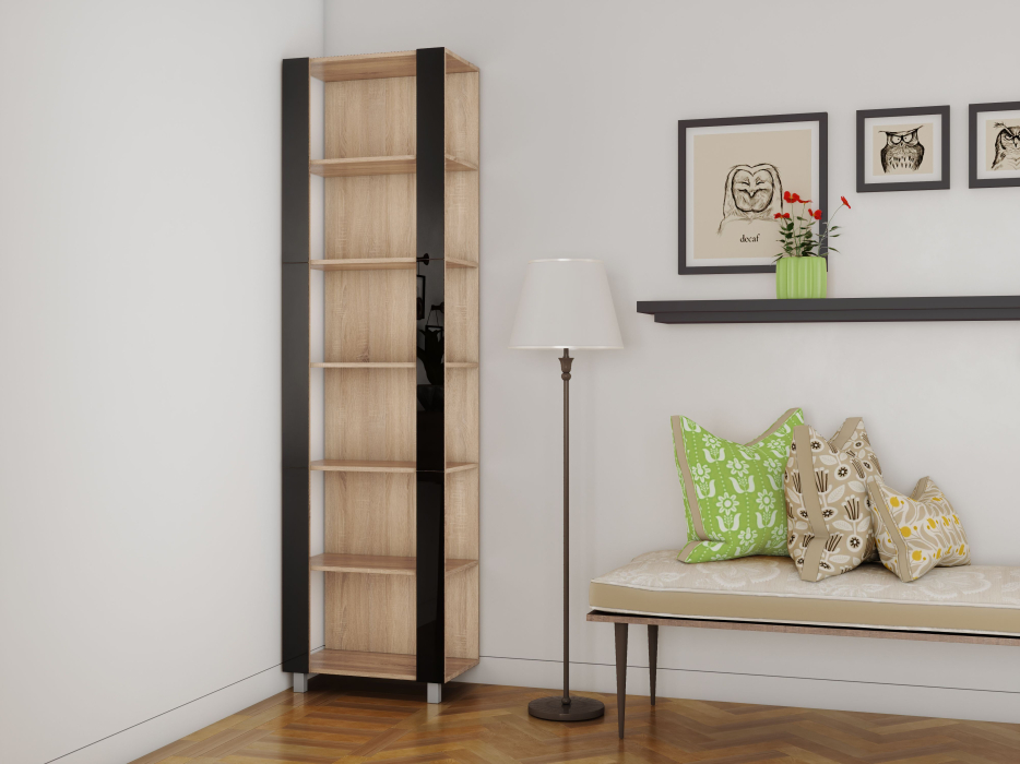 Отзывы о Столплит Стеллаж модульный Универсальный 35х60х220 Черное стекло Дуб сонома