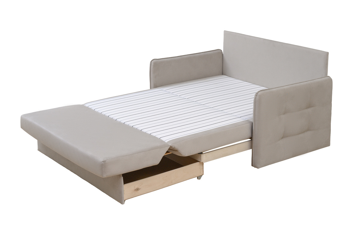 Диван-кровать Смайл, габарит 136 x 85 x 90, спальное место 120 x 195, механизм трансформации: выкатной, ящика для белья есть, наполнение спального места: ппу