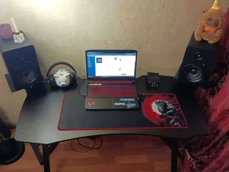 Столешница способна выдерживать максимальную распределённую нагрузку до 100 кг. Это обеспечивает уверенность и комфорт при использовании стола, позволяя разместить на нём разнообразные предметы и обеспечивая его долгий срок службы. Каждый геймер оценит свободное место на столе, благодаря большой поверхности столешницы (120х60 см) пользователь сможет свободно управлять мышью, использовать дополнительный монитор или разместить на нем колонки и другие необходимые аксессуары.