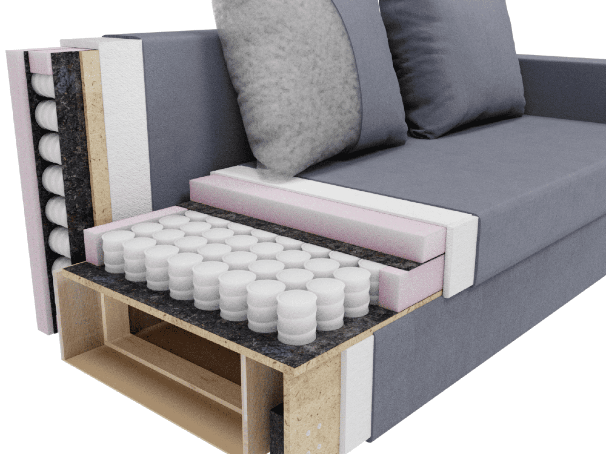 - Раскладной механизм позволяет быстро и без проблем превратить диван в удобную кровать.