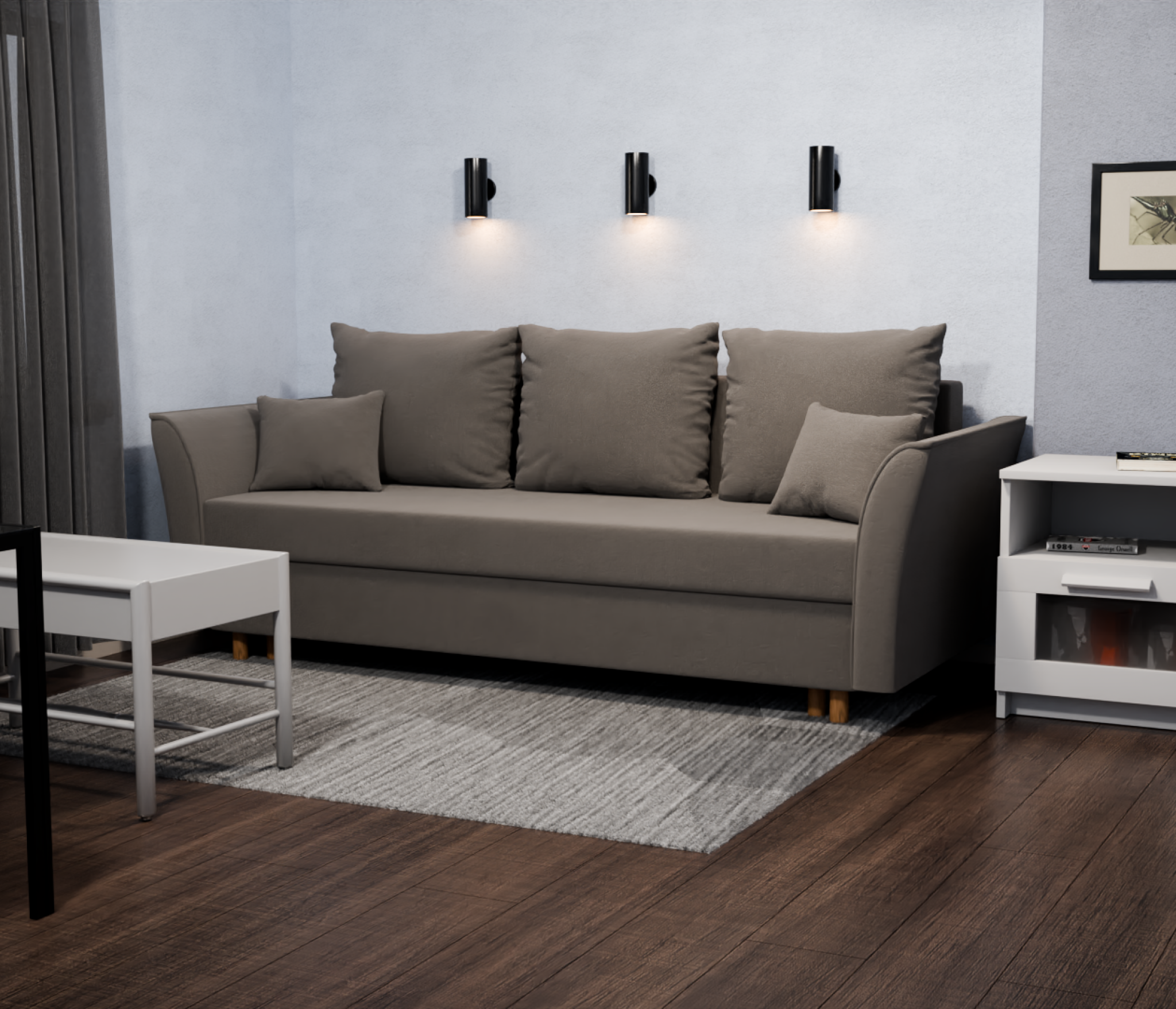 Особенности: с подлокотниками, раскладная конструкция, съемные подушки.