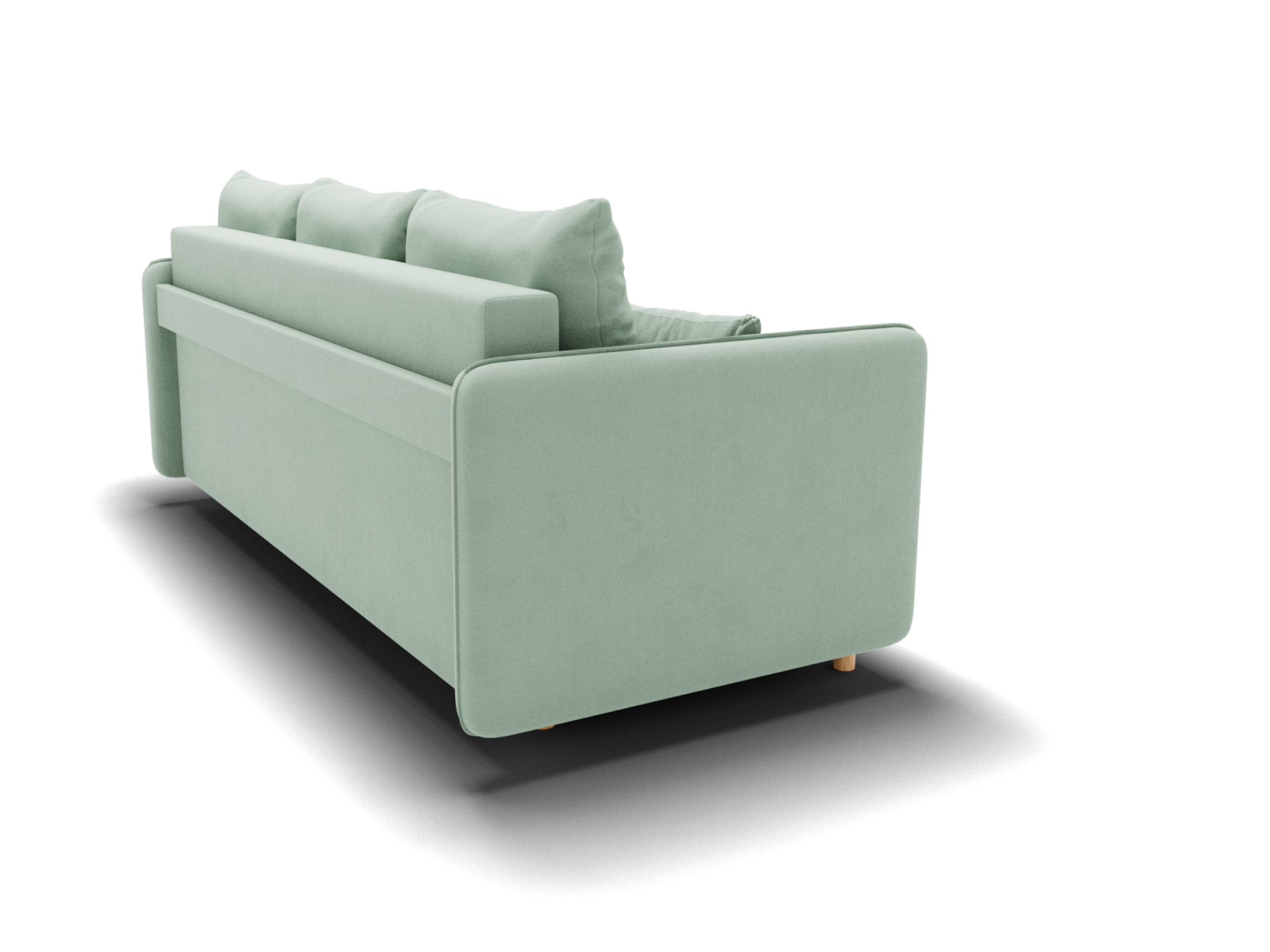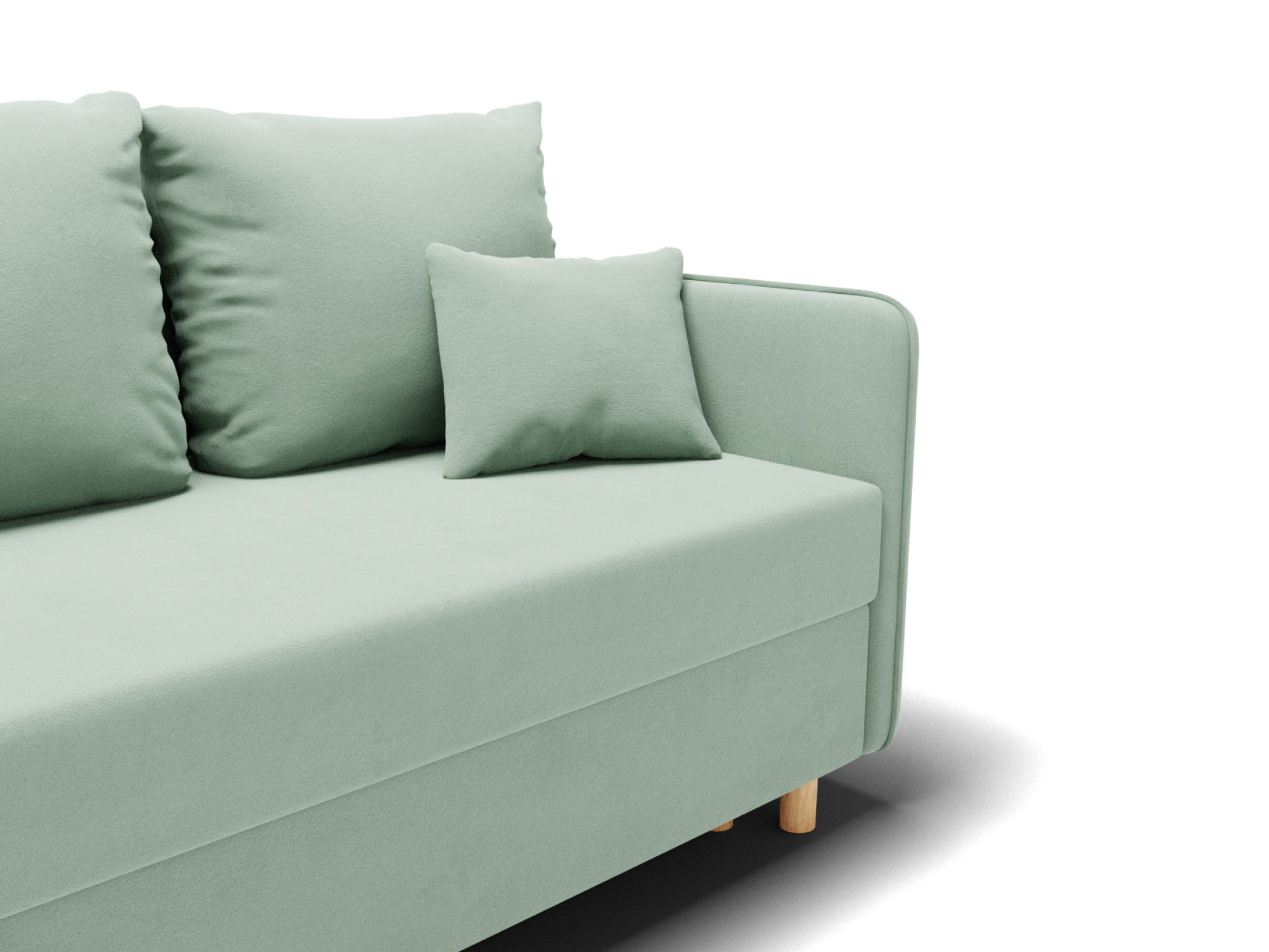 Диван-кровать оснащен механизмом трансформации "еврокнижка" и ящиком для хранения белья. Обивка выполнена из мягкого и приятного на ощупь велюра. Цвет дивана "фисташковый", что делает его универсальным и гармоничным для многих интерьеров.