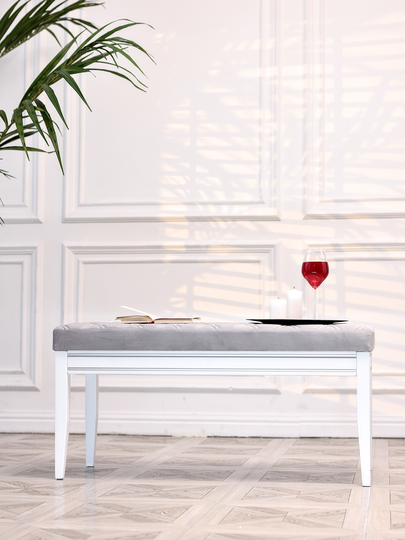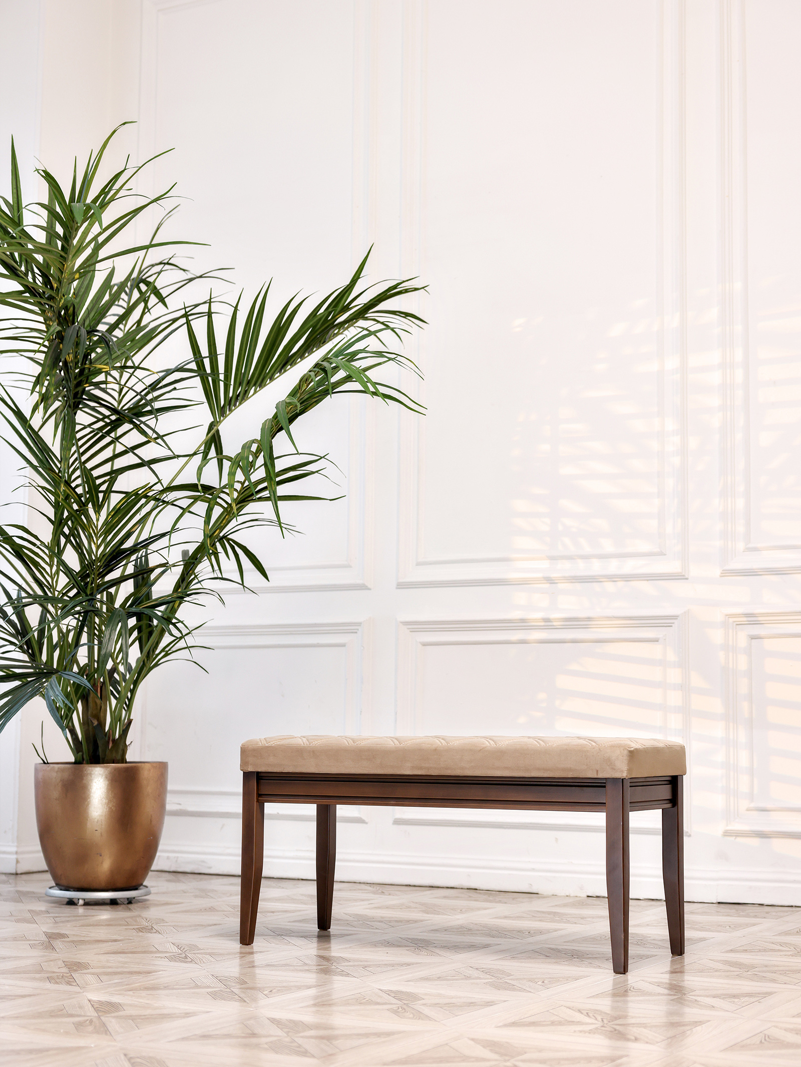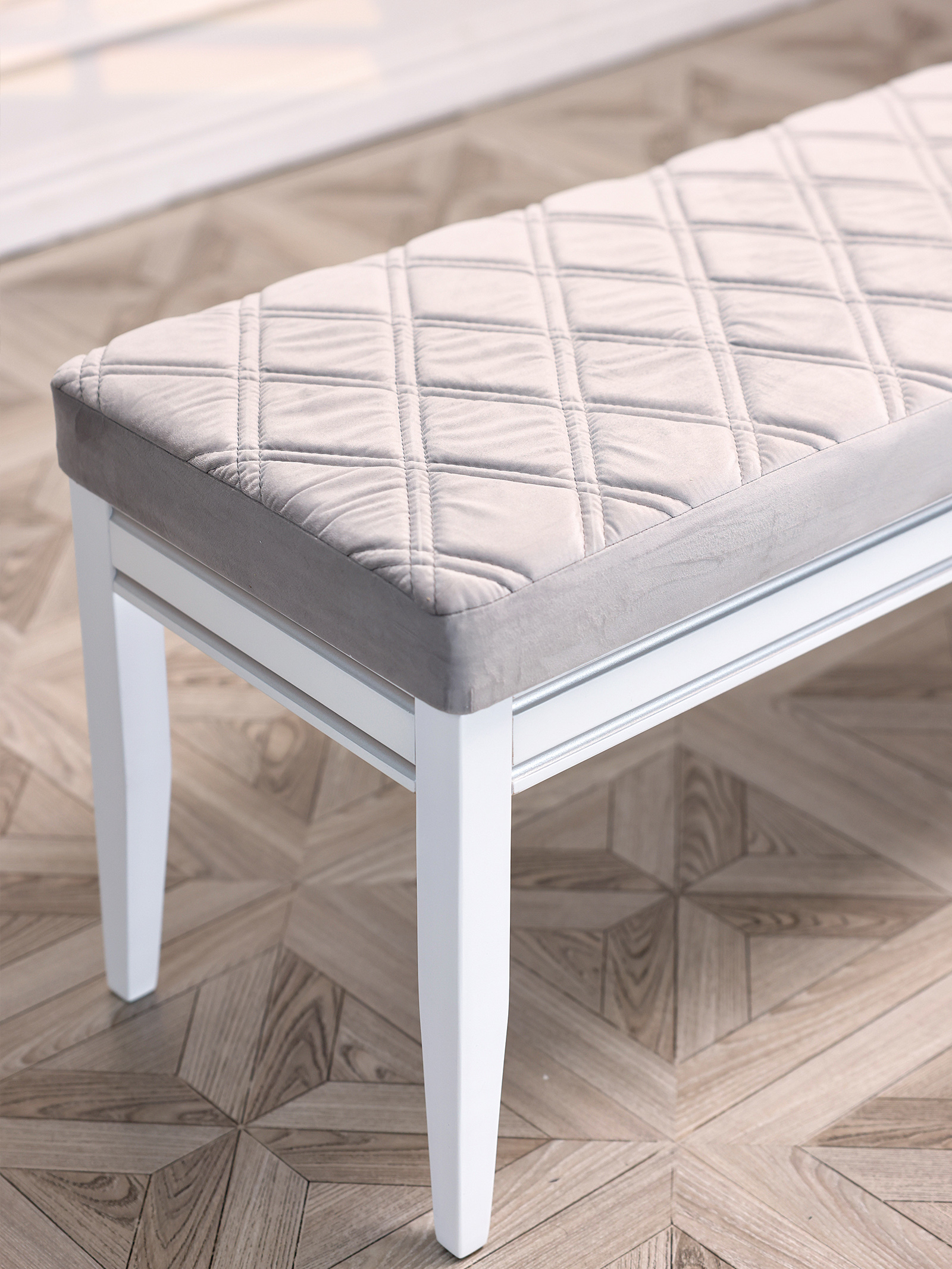 Роскошная банкетка в классическом стиле идеальное дополнение в любой интерьер. Уникальный дизайн, созданный профессионалами, сочетает в себе современные минималистичные мотивы, а также незыблемую классику. Материал банкетки - бук, долговечный, прочный, а также натуральный и невероятно приятный на ощупь. Благодаря уникальным итальянским и немецким швейным машинам мы создали уникальный шов, который делают при создании обивки немецких и итальянских автомобилей. Наша банкетка - универсальный предмет мебели для гостиной и спальни может использоваться разными способами. Прикроватная банкетка в изножье кровати, для складывания покрывала перед сном или одежды. Идеально подойдет для туалетного столика. Пуфик в прихожей, на котором можно присесть и комфортно обуть обувь. Посадочные места на маленькой кухне: вместо кухонного дивана поставьте пару банкеток - диванов. Вы можете задвинуть банкетку под стол и она не будет мешать. Банкетку - диван подойдет для посетителей торговых центров и магазинов, для размещения в примерочной или в торговом зале. На банкетке можно удобно отдохнуть или положить одежду, сумку. Банкетки также используют в офисах, салонах красоты, конференц залах, гостиницах и ресторанах. Ткань легко отмывается, а ножки легко вкручиваются. Сборка занимает не более 5 минут. Размеры банкетки: 1015 мм* 480мм*410мм.
