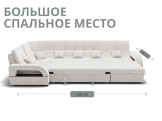Спальное место имеет ширину 135 см и длину 290 см. Он предназначен для двух человек и имеет глубину сиденья 65 см. Максимальная нагрузка на диван составляет 280 кг.