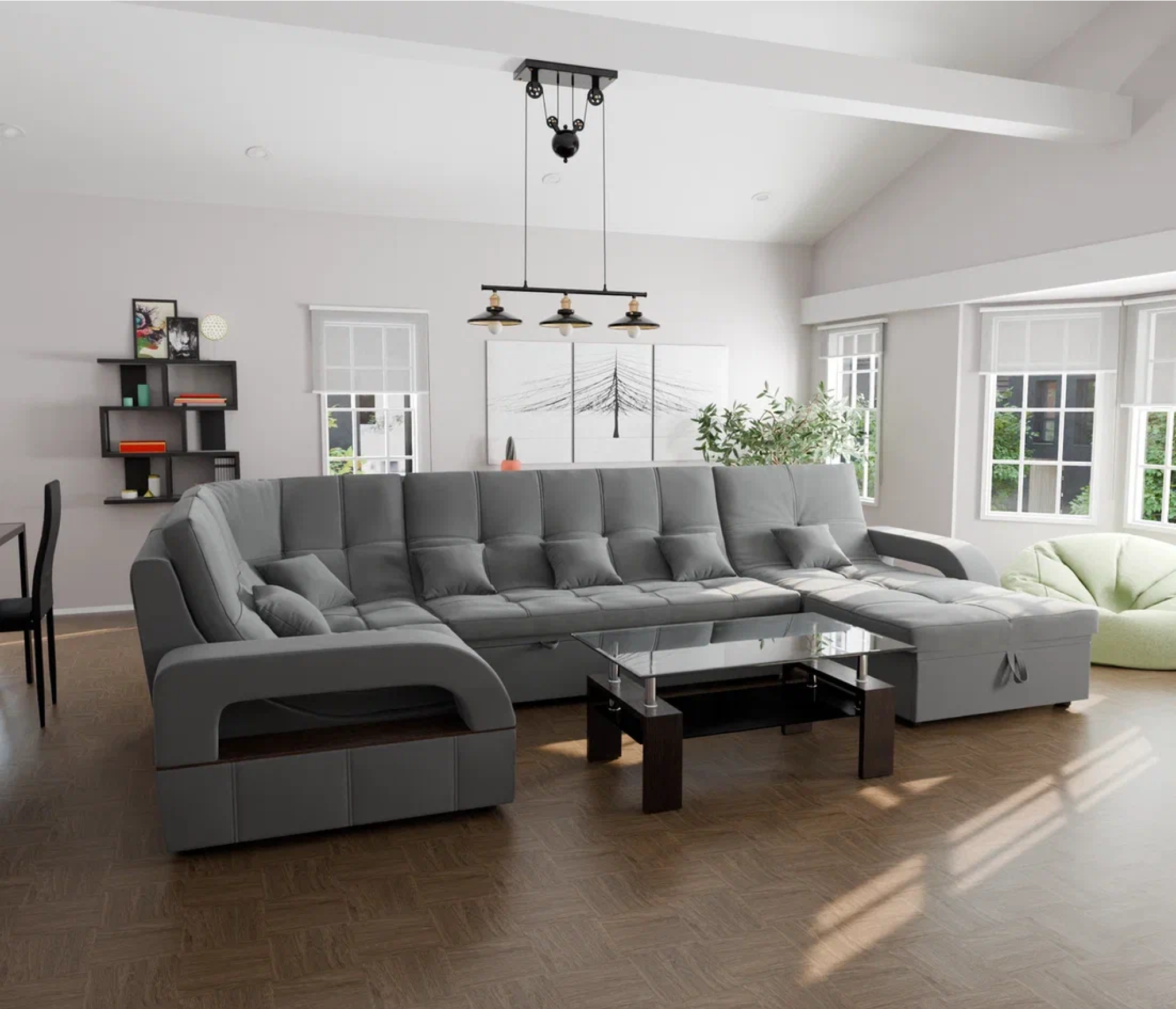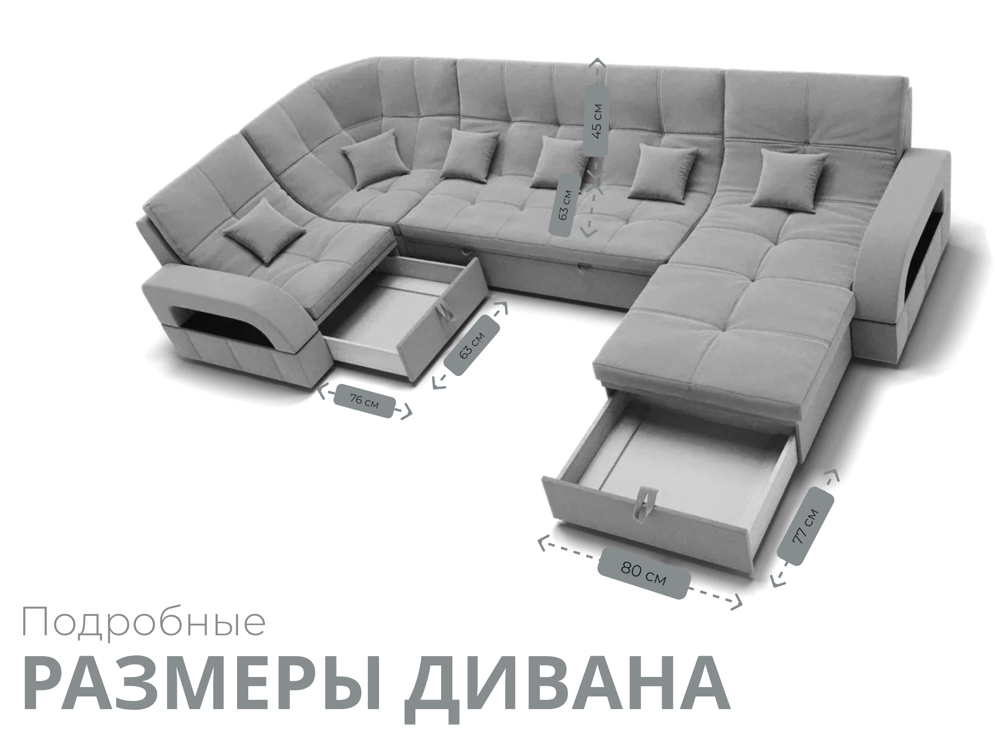 Он имеет высоту 97 см, ширину 350 см и глубину 187 см. Обит велюром - Veluta lux. Диван обладает универсальным расположением угла, что позволяет его использовать в любом помещении.
