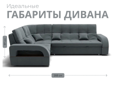 Он имеет высоту 97 см, ширину 187 см и глубину 268 см. Диван обладает универсальным расположением угла, что позволяет его использовать в любом помещении.