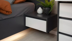 Современная прикроватная тумба "Мишель" с креплением к кровати создает визуальную целостность и "иллюзию парения". Приобретается в комплекте из 2 штук. На столешнице поместятся небольшой светильник и необходимые аксессуары, а в ящике с направляющими полного выдвижения удобно хранить личные вещи. Идеально компонуются со всеми модулями системы "Мишель".