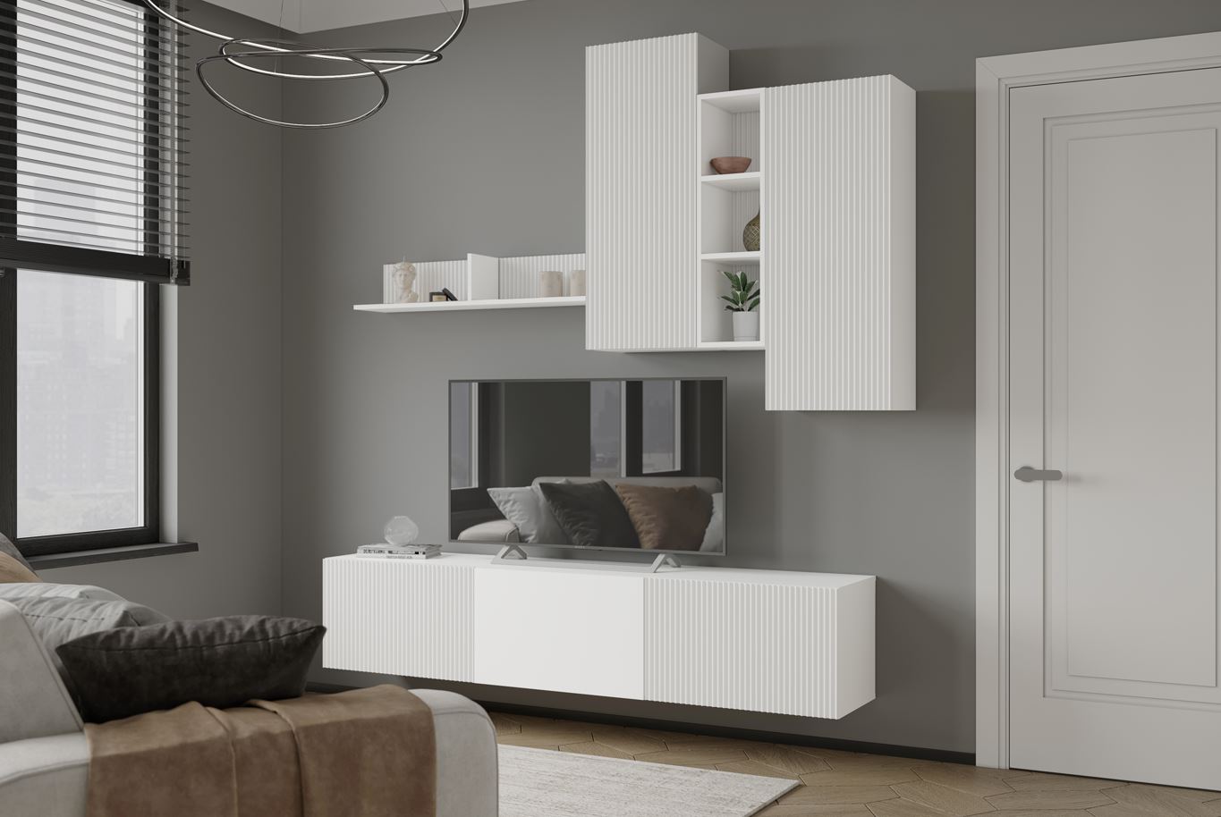 Открытая навесная полка Сириния впишется в современный интерьер гостиной и украсит ее.