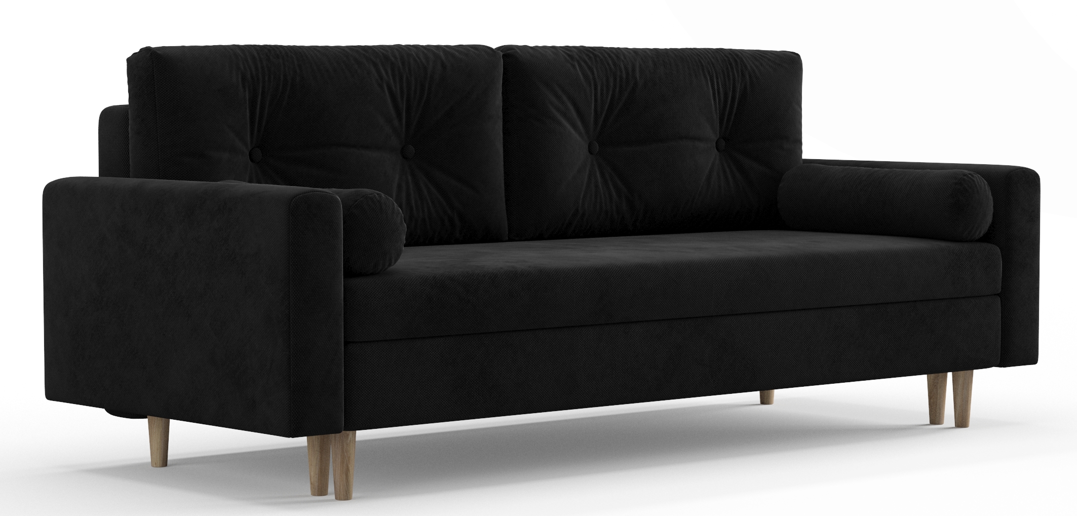 Диван-кровать Таврида, пружинный блок, велюр (Черный)