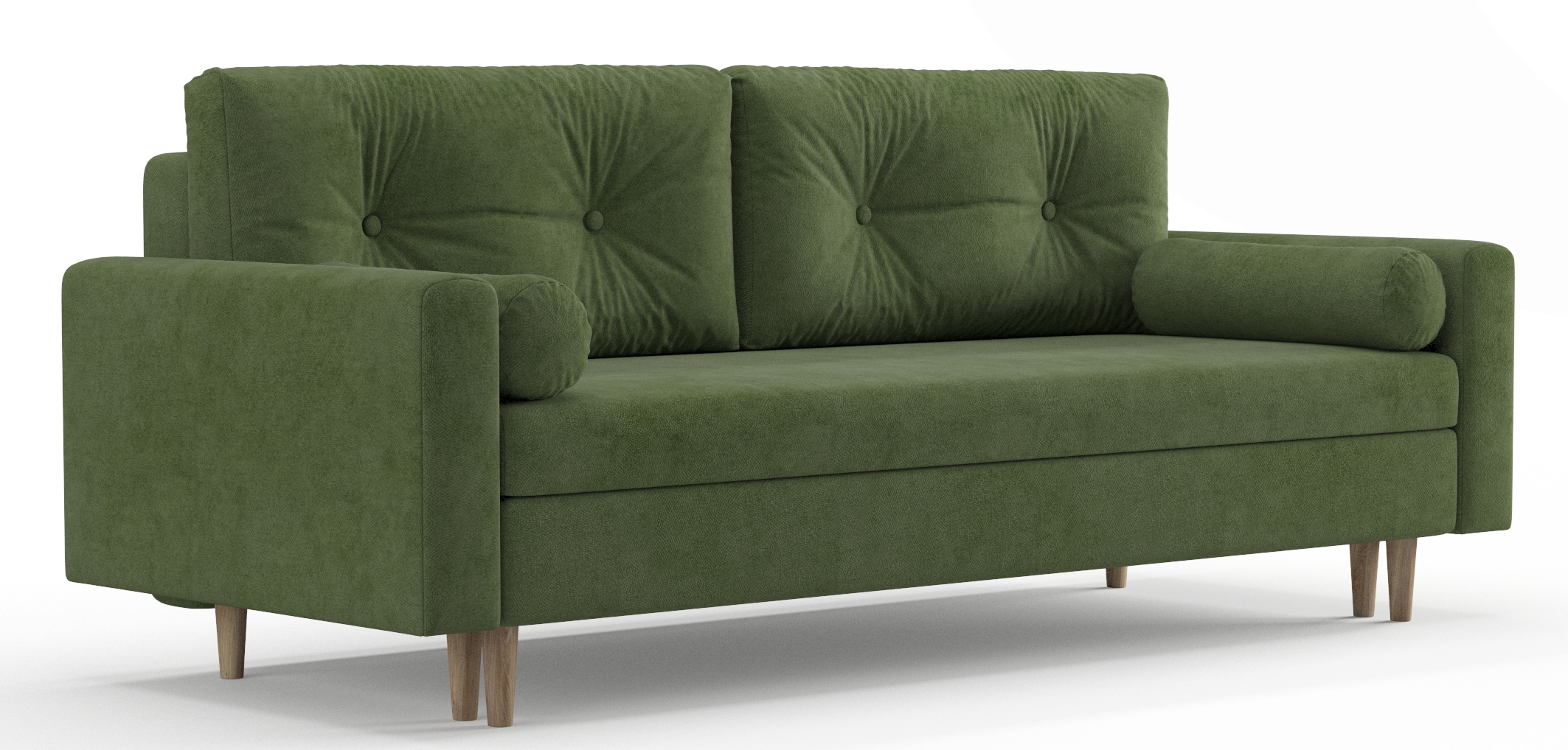 Диван-кровать Таврида, пружинный блок, велюр (Зеленый)