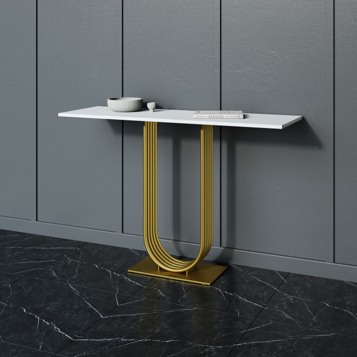 Стол консольный с металлическим подстольем ARFEO (Золотой) 80*35*120 (Белый)