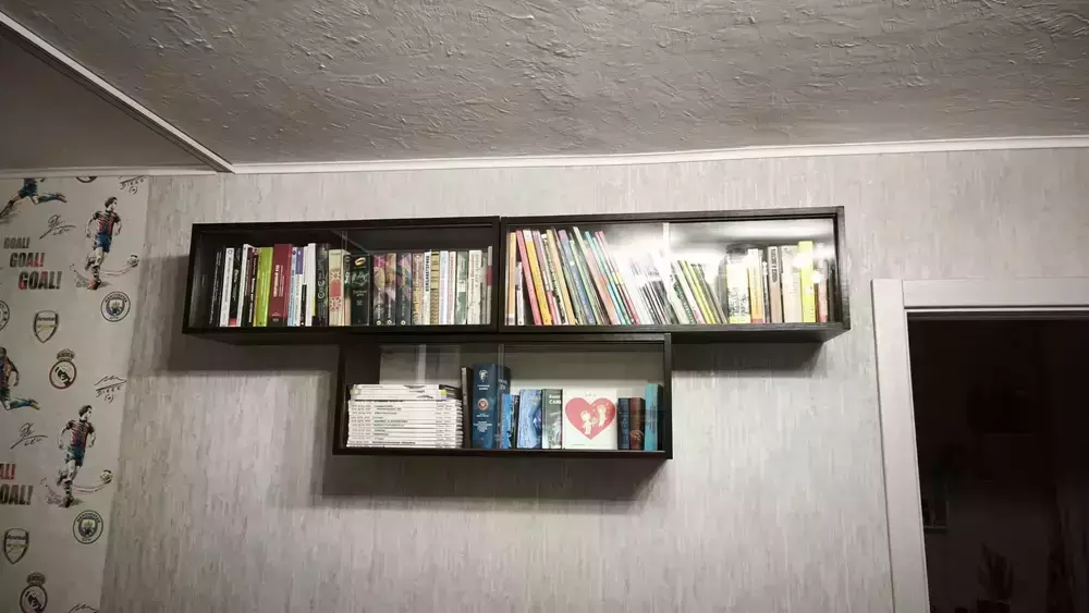 Очень качественный товар. Заботливое отношение продавца к покупателям: бережная упаковка, контактность, быстрота отправки. Честно говоря, книги - моя слабость. Хранить их бережно дома, уже не получается (шкафы, полки и антресоли уже забиты). Поэтому, настал черёд жилого загородного дома. Нашёл место в нишах (карманах) чердака. Купил сразу два комплекта: венге и светлый дуб. Четыре сразу установил (на фото) , две оставил для дома ). Опасался битых стёкол, сколов, некачественной фурнитуры. Напрасно - всё целое и качественное! О расцветке: венге - насыщенный тёмно-коричневый цвет, с чёрным переливом (красивый), дуб - светлый, с розоватыми жилками (нарядный, неизбитый). Товар и продавца рекомендую. Подумываю ещё прикупить. 😃