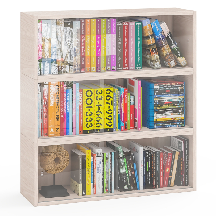 Отзывы о Столплит Три книжные полки КН1 со стеклянными сдвижными дверками Ясень шимо светлый