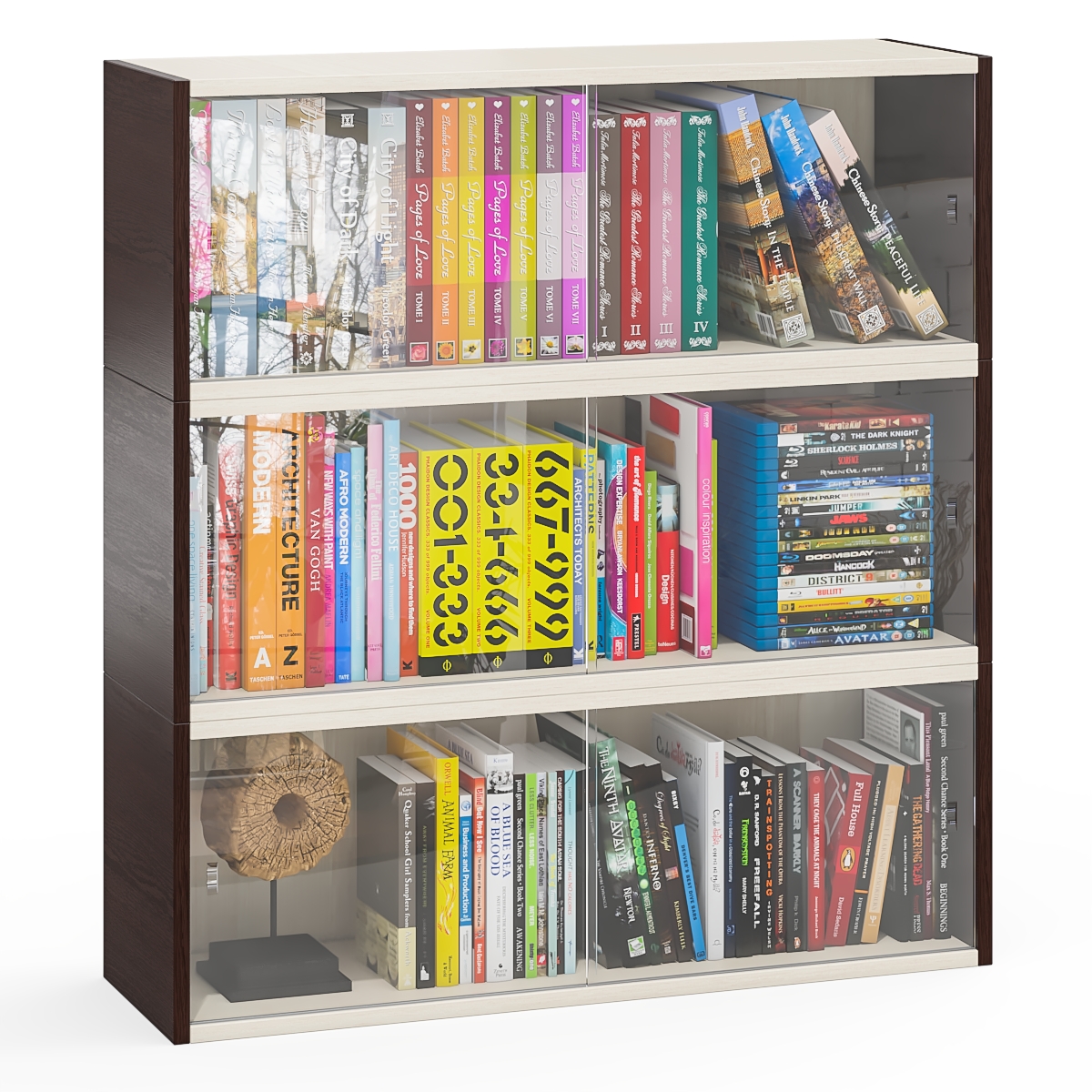 Отзывы о Столплит Три книжные полки КН1 со стеклянными сдвижными дверками Венге/Дуб Кобург