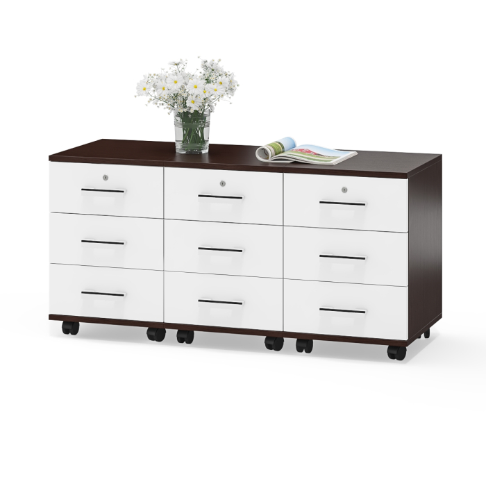 Удобные, мобильные тумбы, каждая с тремя выдвижными ящиками - идеальное решение проблемы расширения «складских мест» дома и в офисе. В комплектации 3 тумбы. По Вашему желанию тумбы послужат хранителем деловых бумаг в кабинете, косметики в спальне или «перчаточным» ящичком в прихожей. Верхние ящики тумб закрываются на ключ, что позволит хранить там важные документы или очень «личные» вещи. Тумбы установлены на колёсики и быстро перемещается в нужное место, что удобно при коллективном пользовании справочниками или техникой. Стильный, лаконичный дизайн тумб позволит ей легко интегрировать в модный интерьер современного кабинета или престижного офиса.